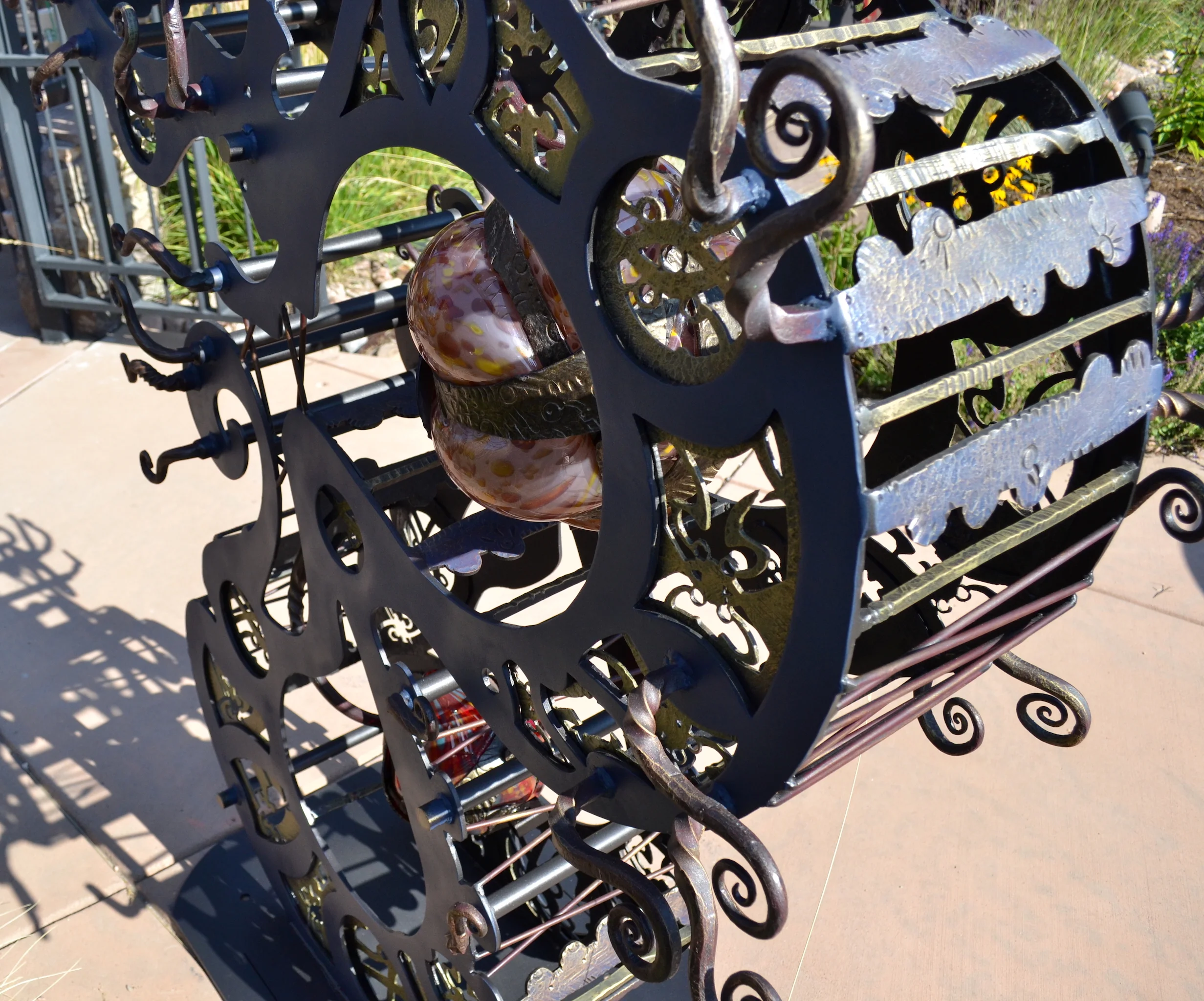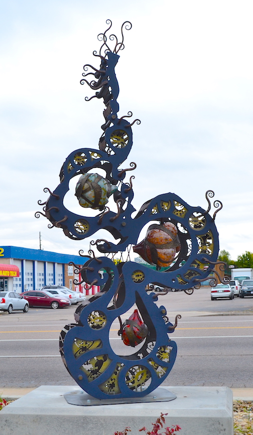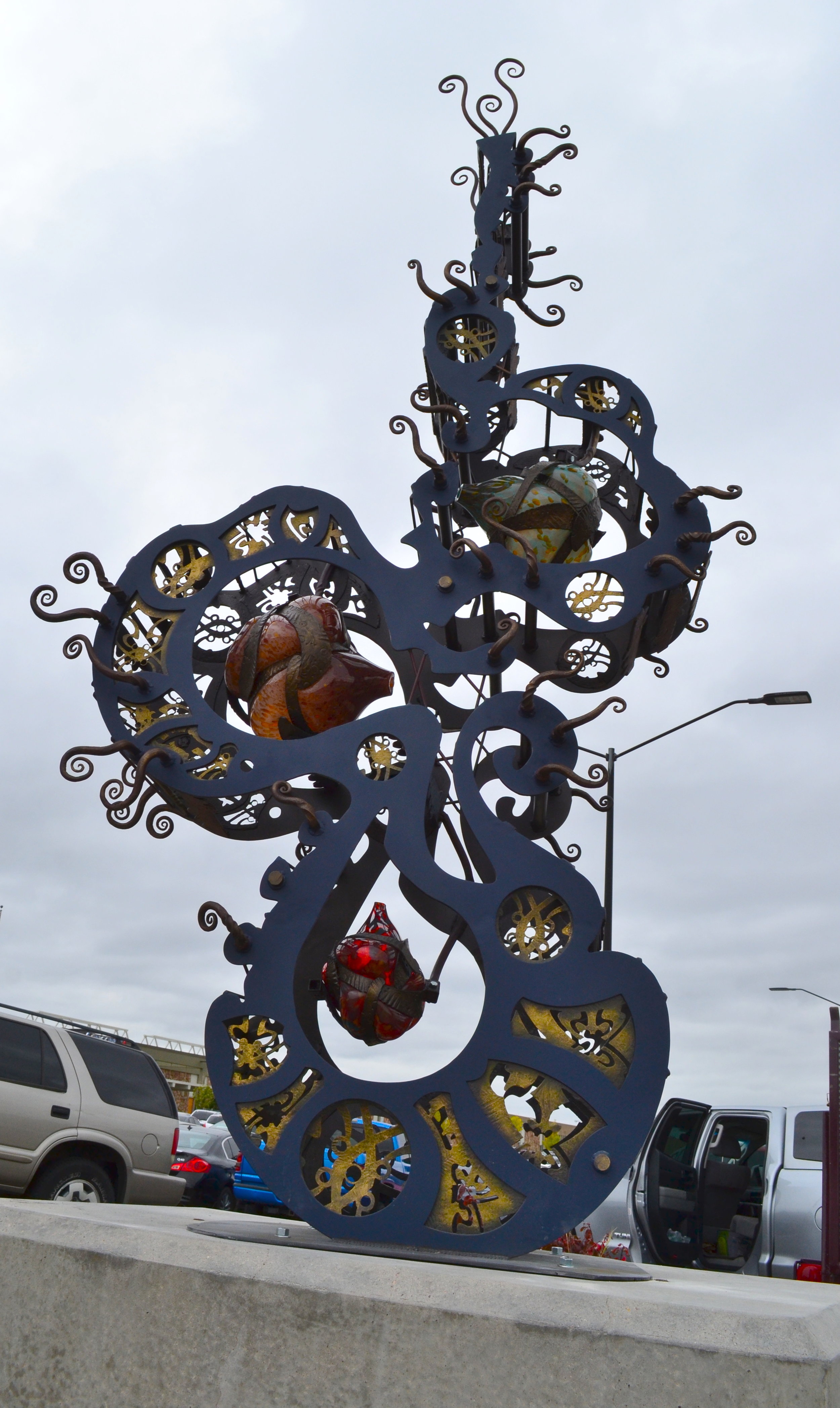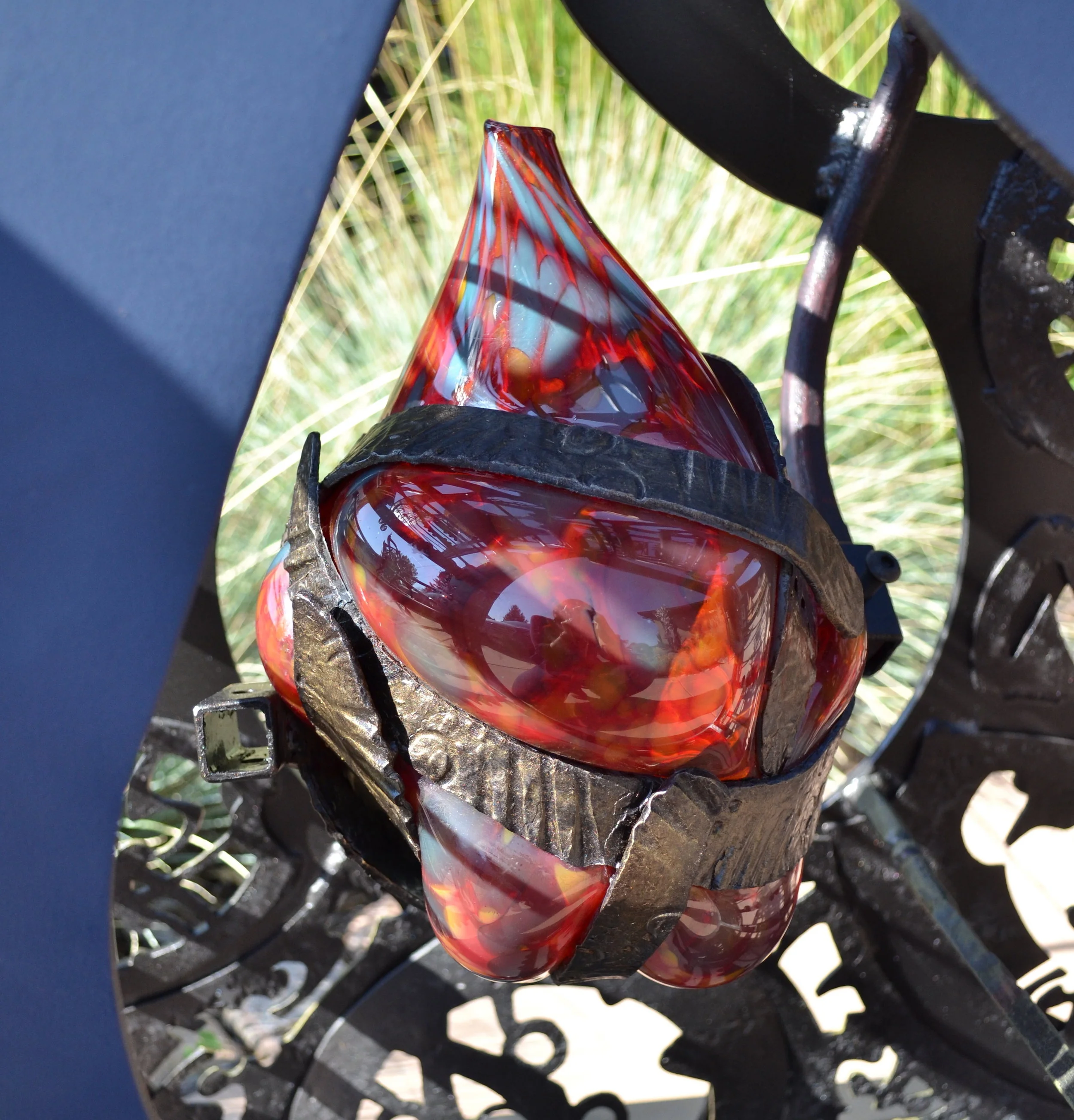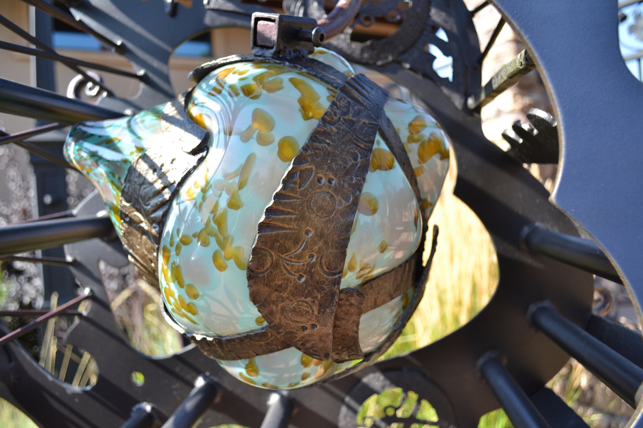 modern wrought-iron style metal and glass art, sculpture, and custom decor