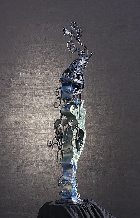 A Need to Nurture is part of my "Iron & Lace" series which is made up of strong women from all avenues of the world. I begin with a simple gesture, cut out of mild steel sheet, then add hand forged steel adornment to bring out the essence her character, that which makes her worthy of celebration