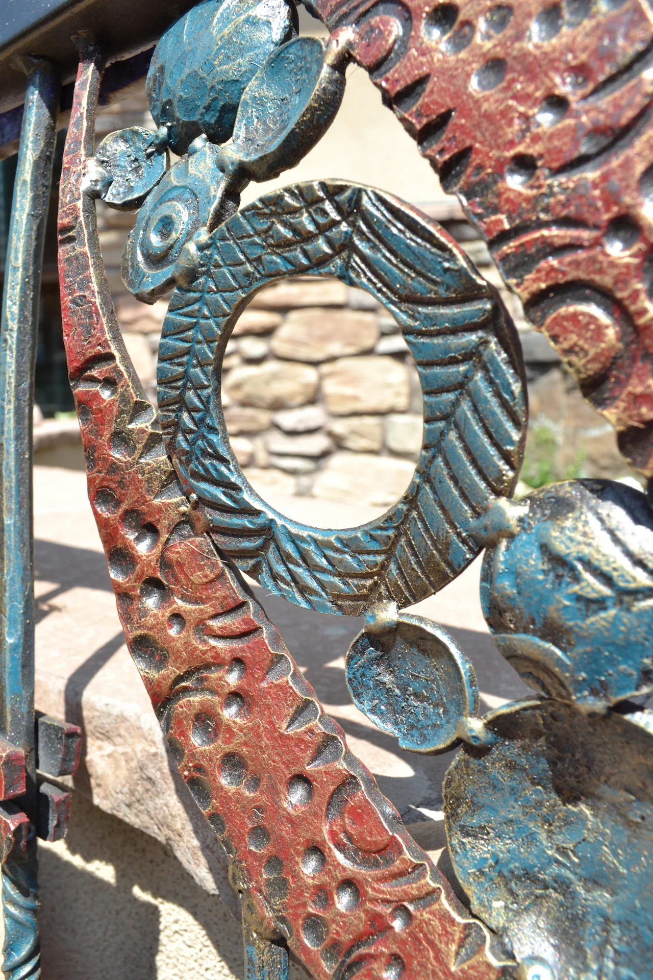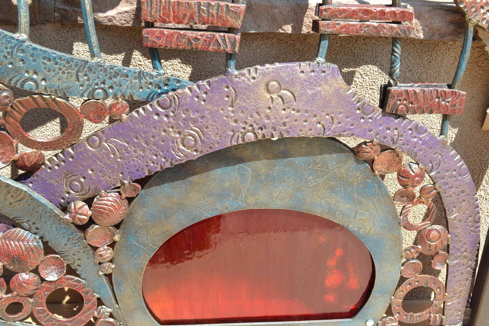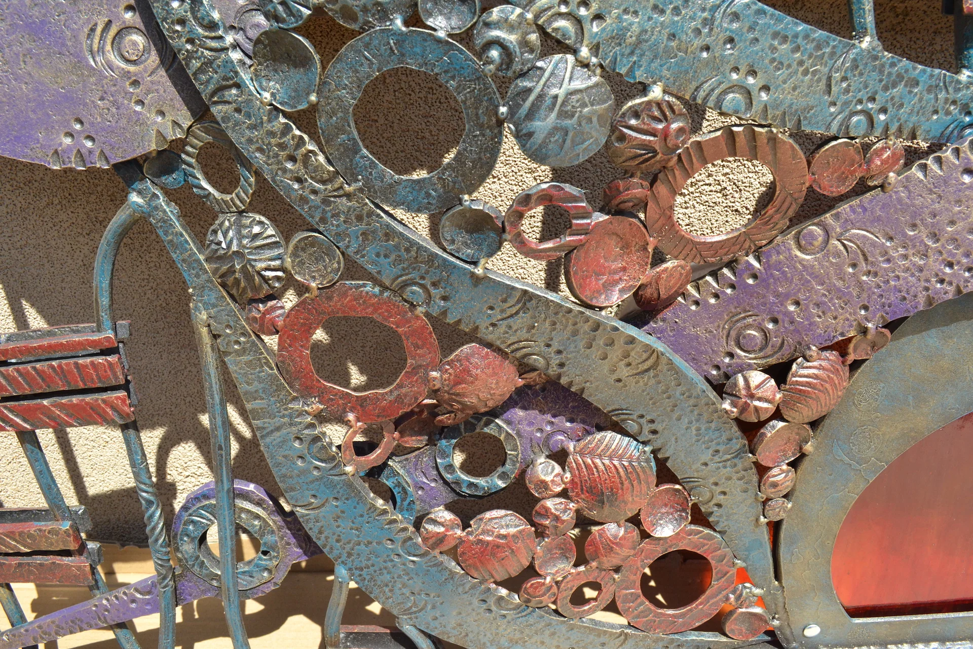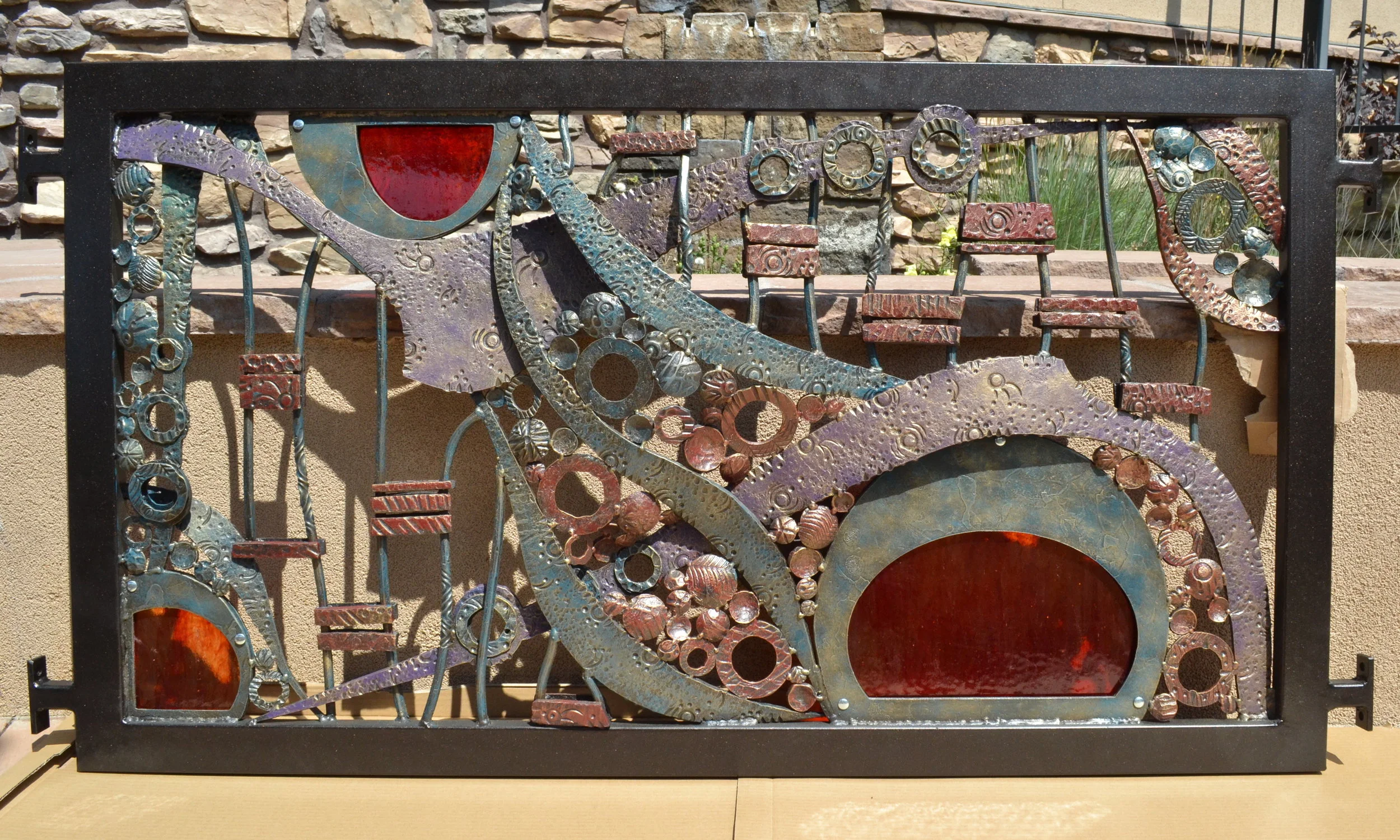 modern wrought-iron style metal and glass art, sculpture, and custom decor