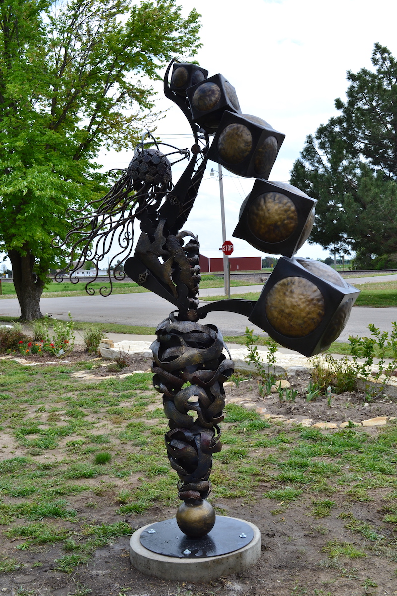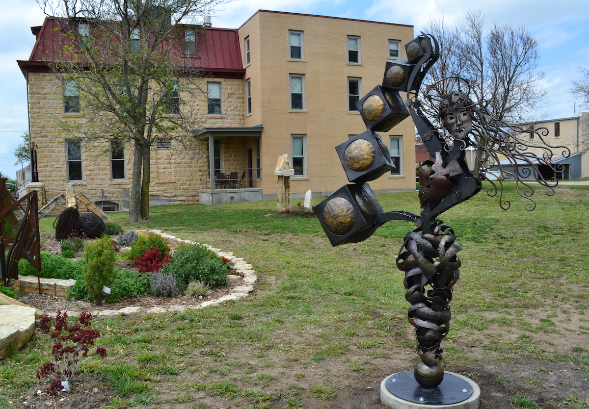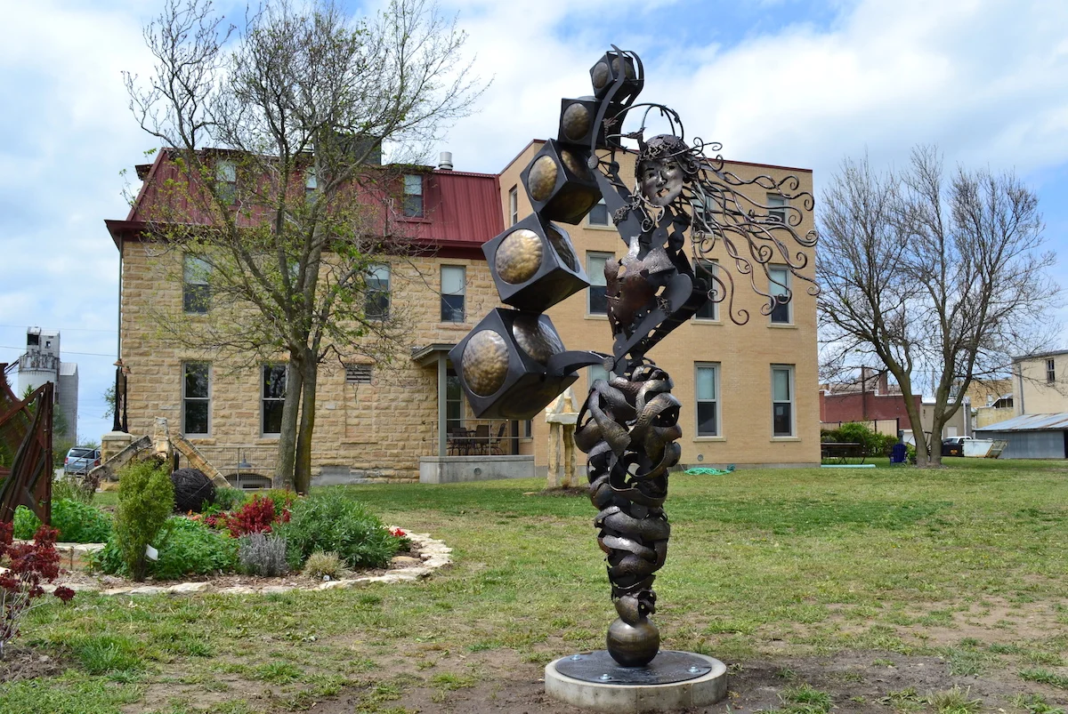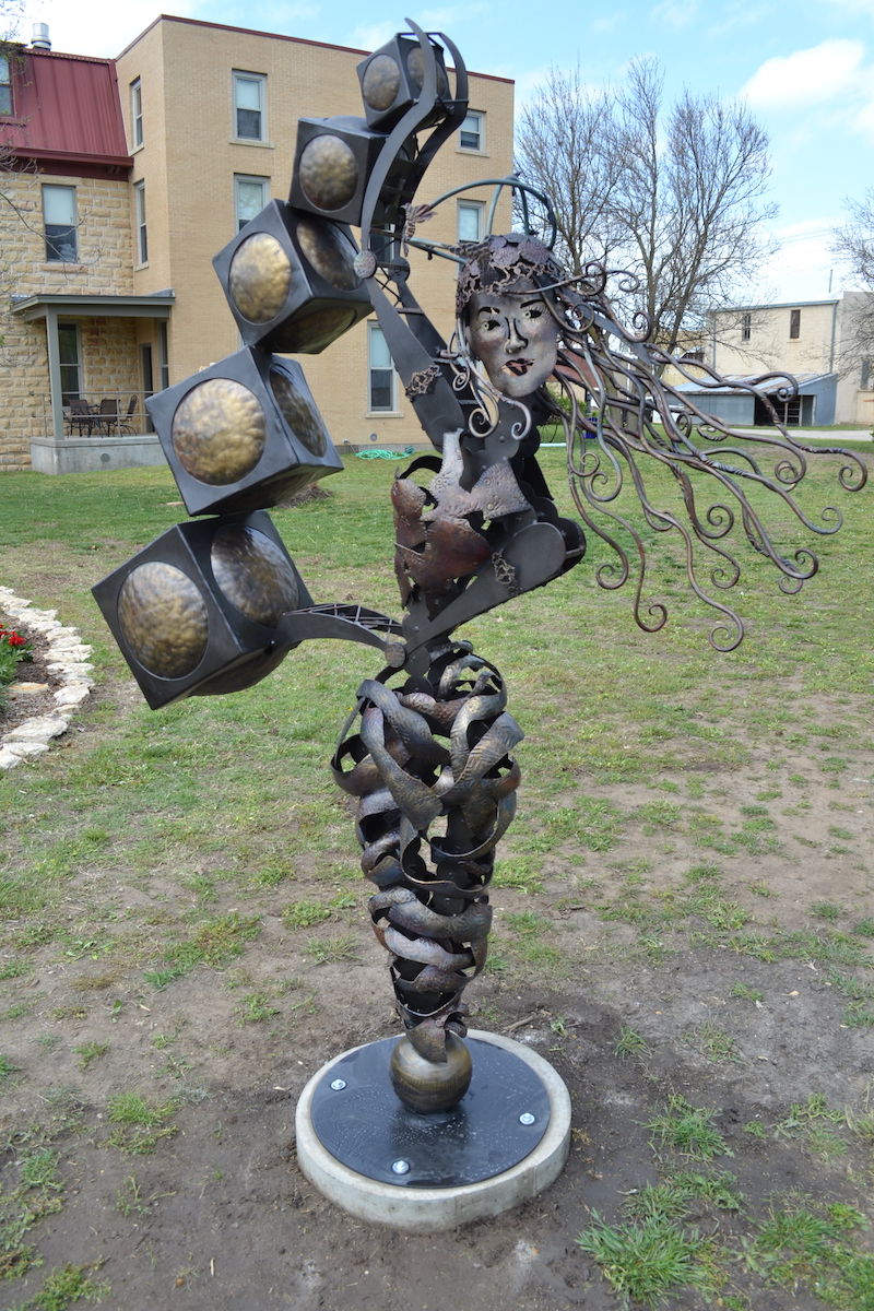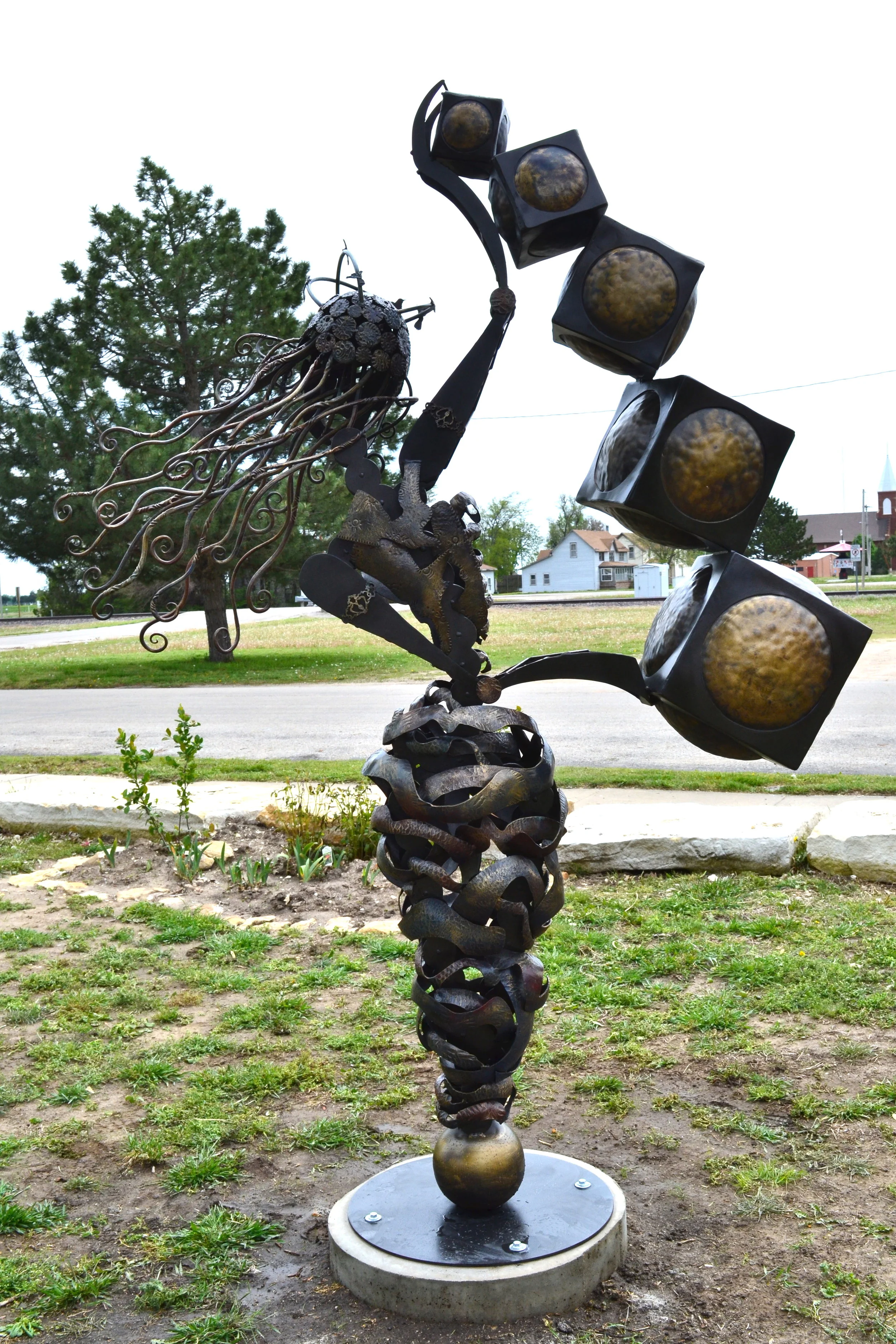 modern wrought-iron style metal and glass art, sculpture, and custom decor