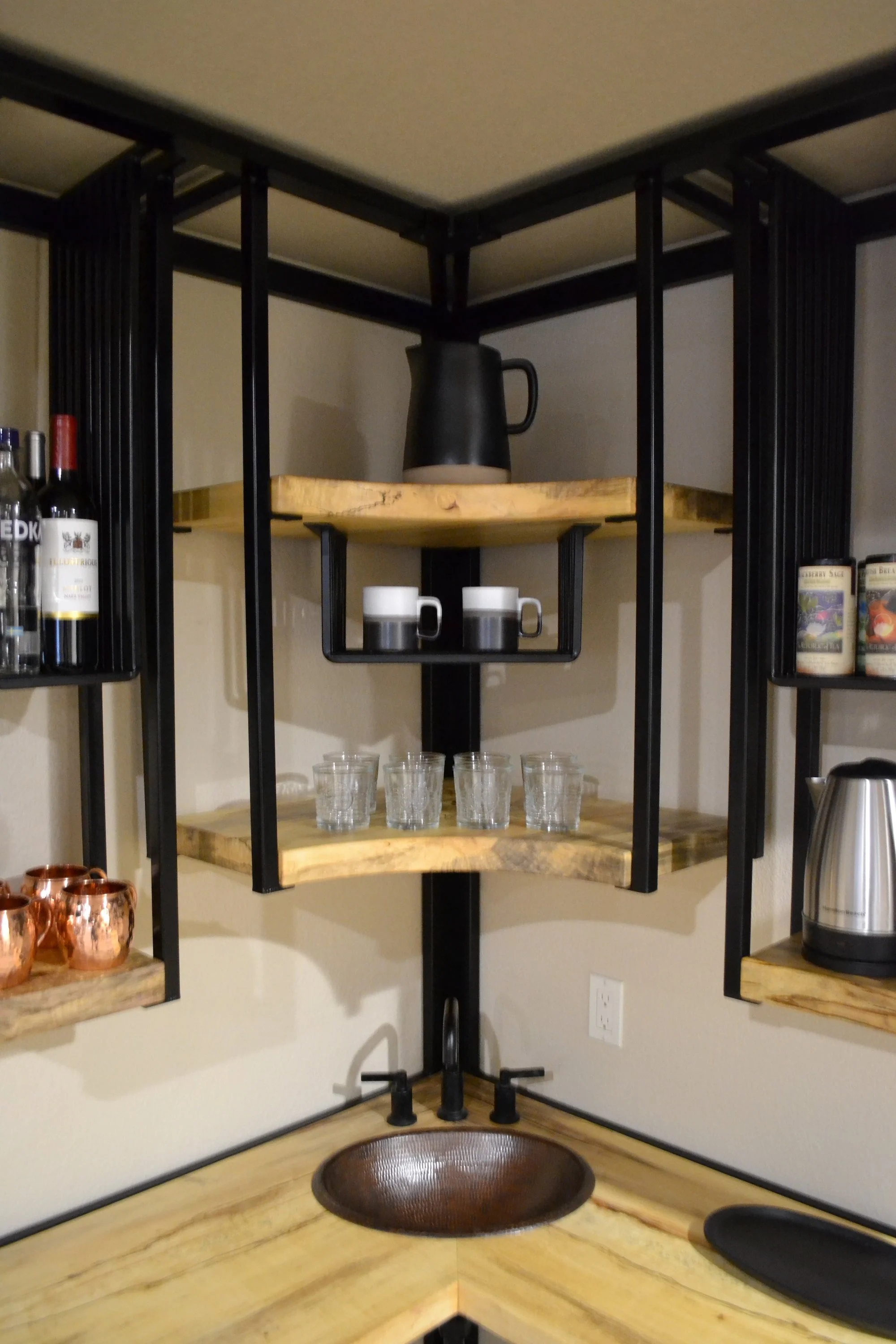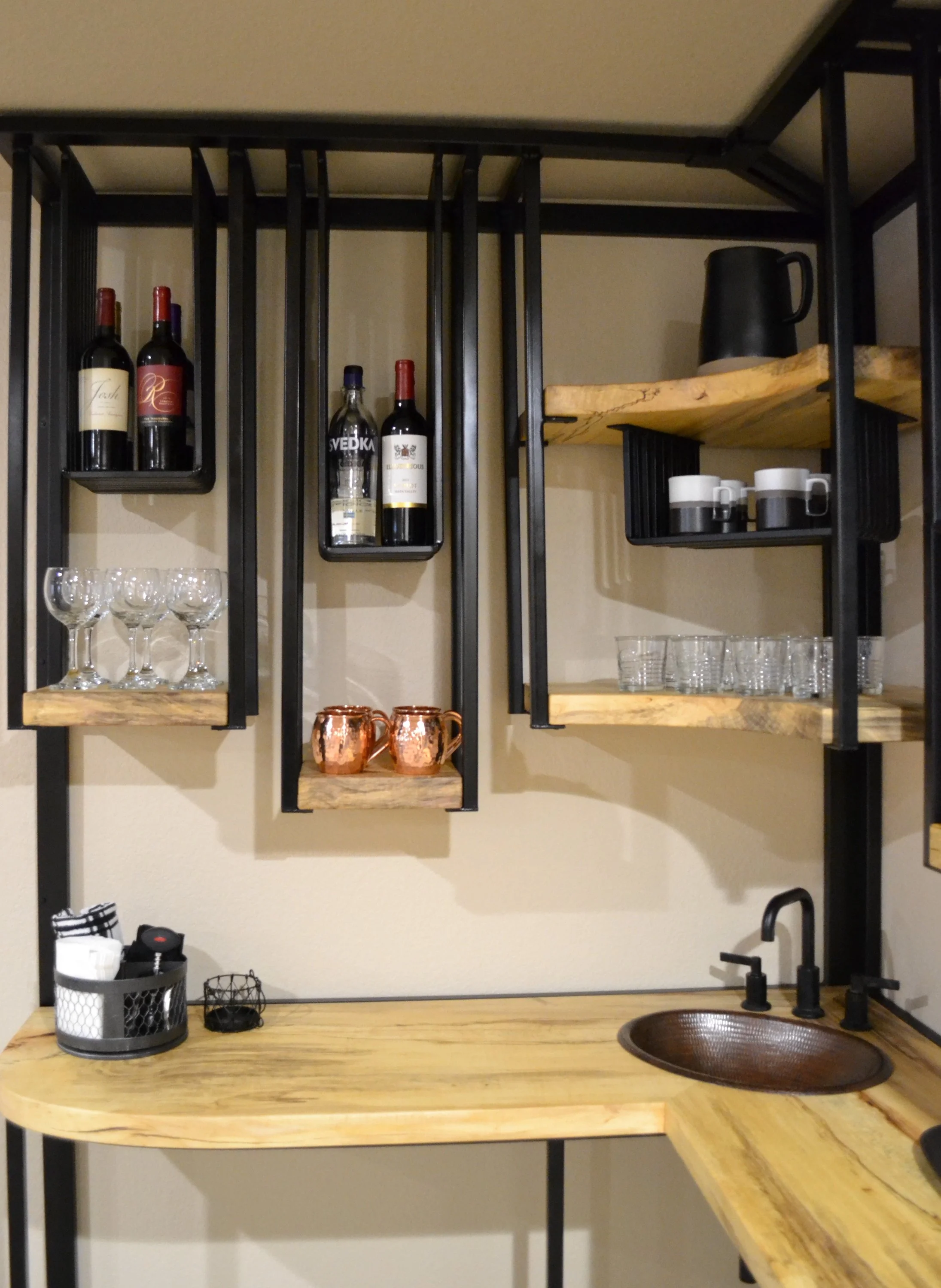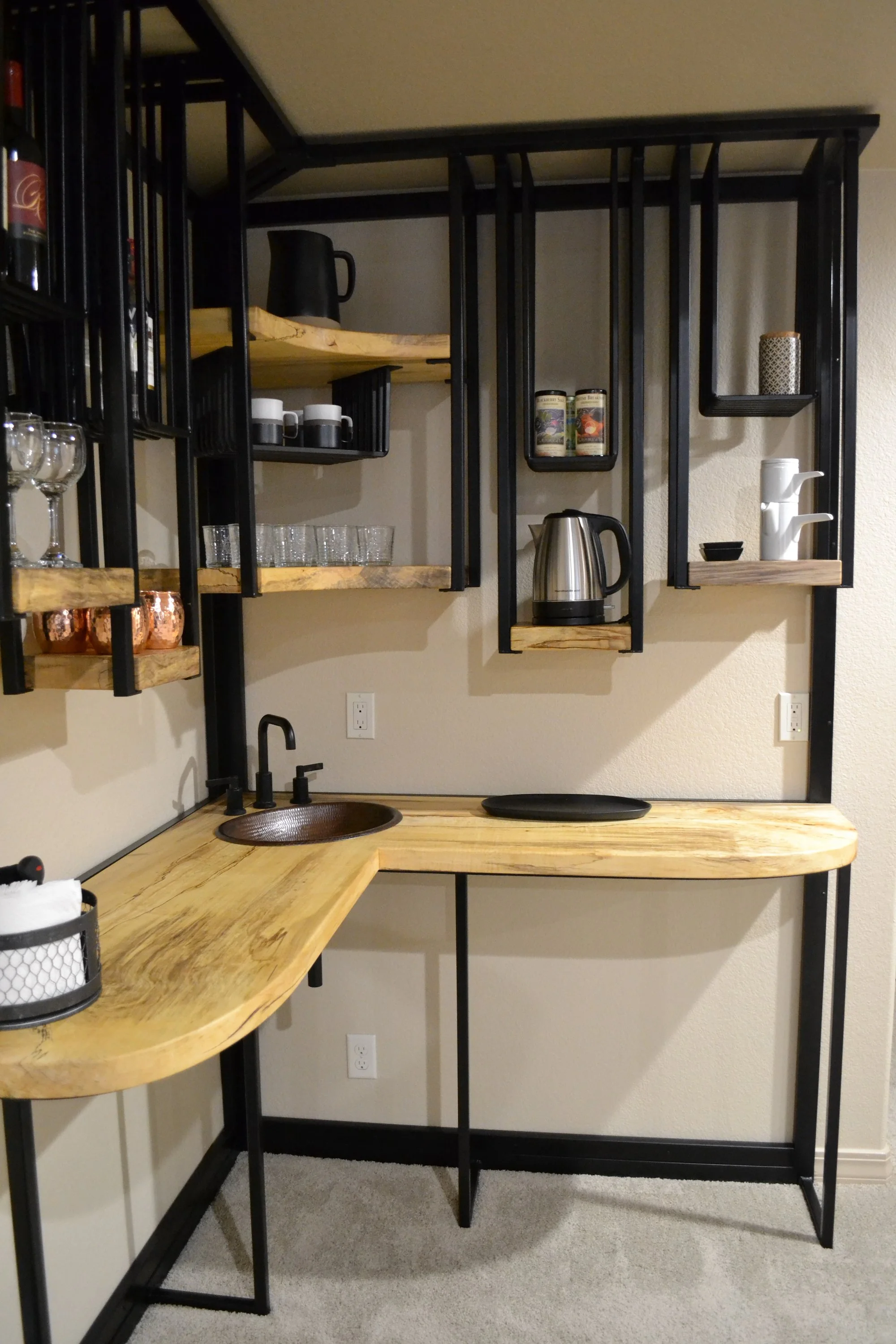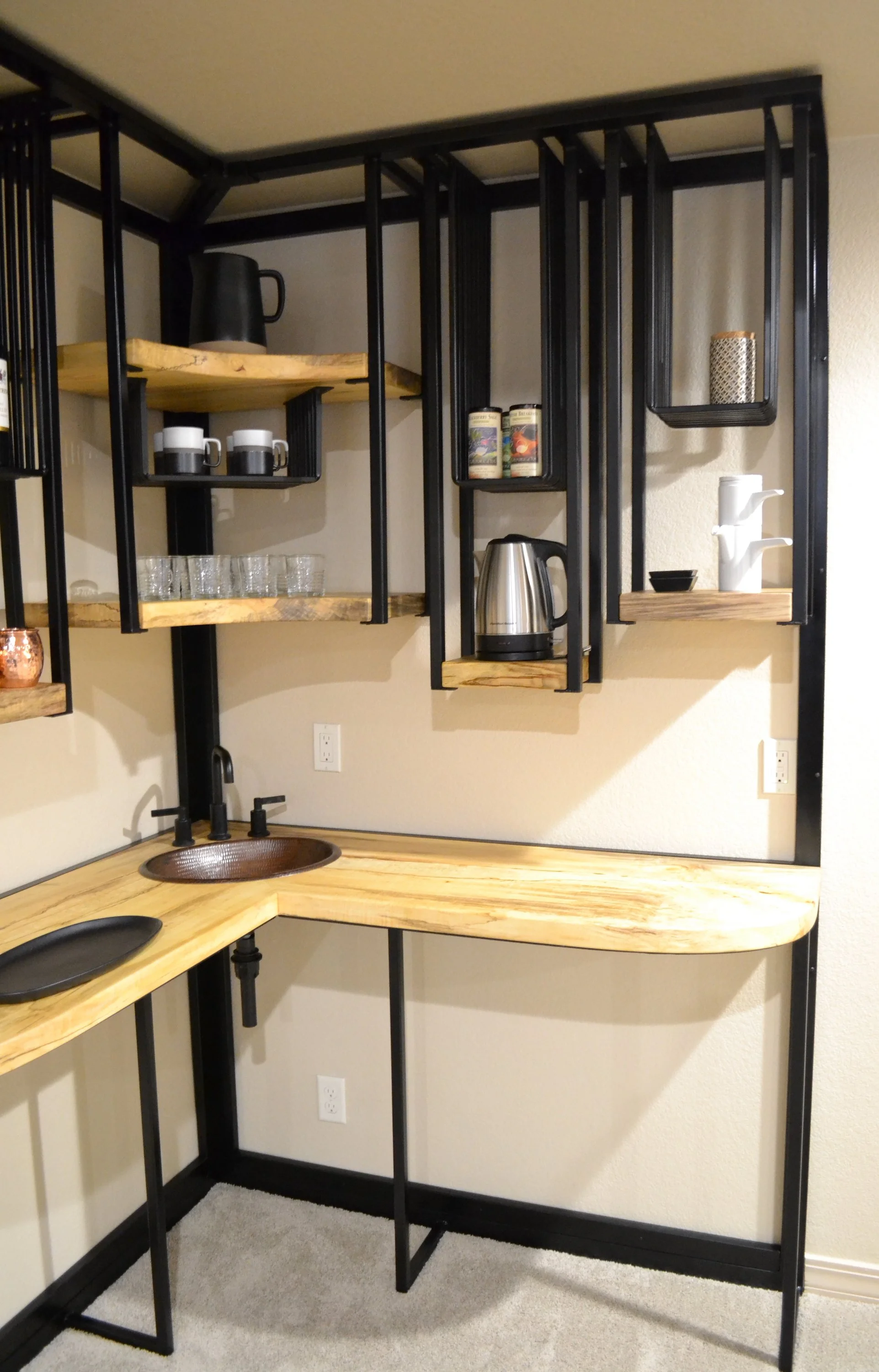 modern wrought-iron style metal and glass art, sculpture, and custom decor