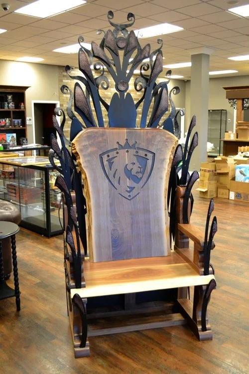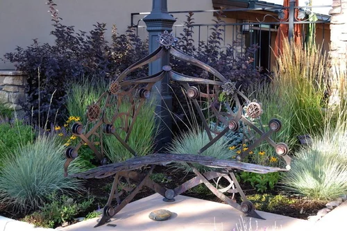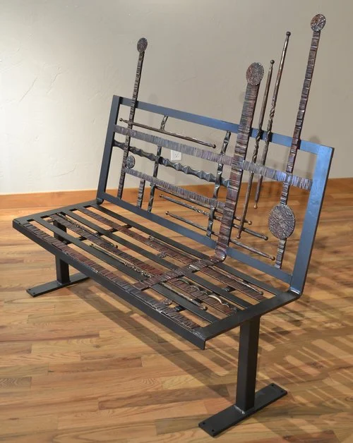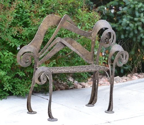 modern wrought-iron style metal and glass art, sculpture, and custom decor