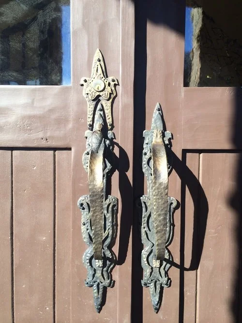 modern wrought-iron style metal and glass art, sculpture, and custom decor