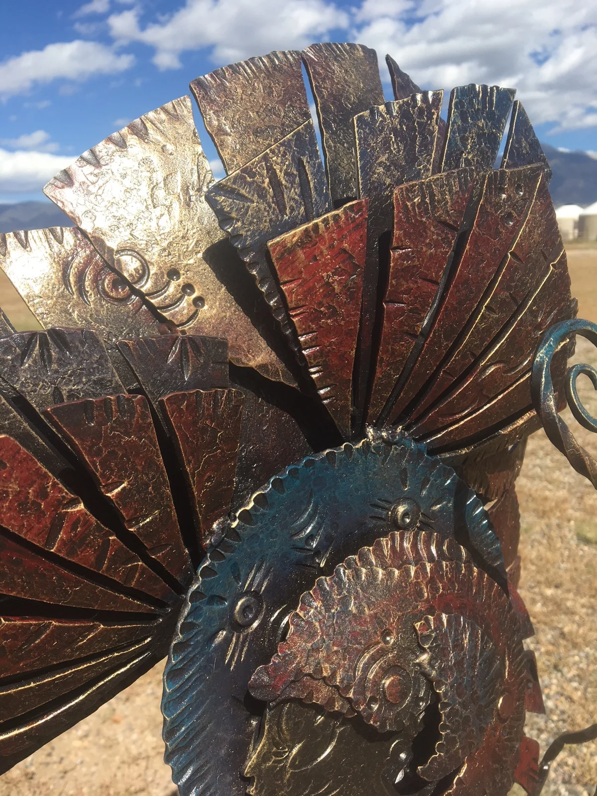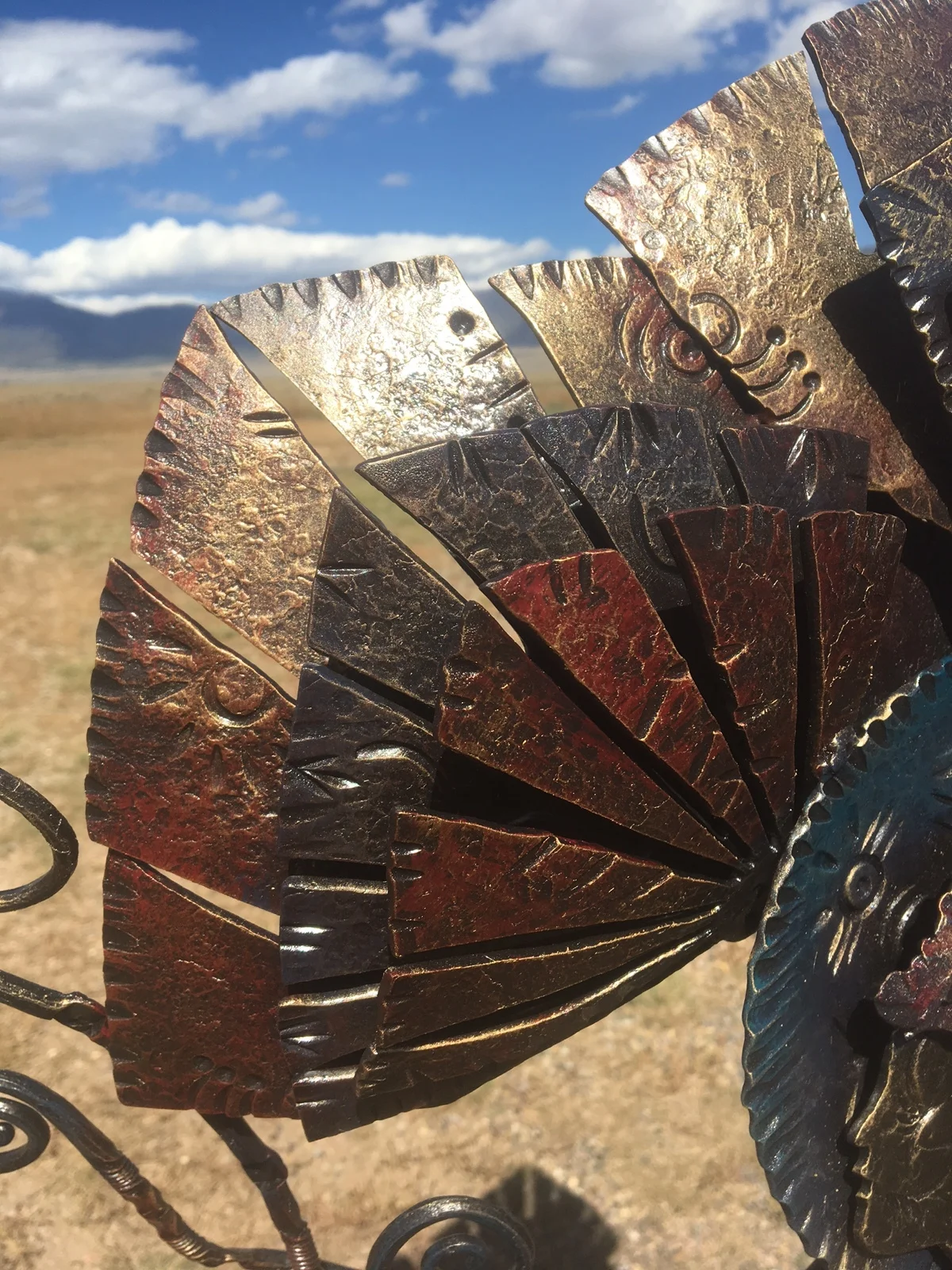 In 2017, Jodie taught the Joyful Journey Hot Springs workshop at the Festival of the Muse in Moffat, Colorado, which was filled with strong women who wanted to learn blacksmithing techniques. Here, Jodie led the collaborative design, mentored the women in building and hand forged the Muse of Goddess.