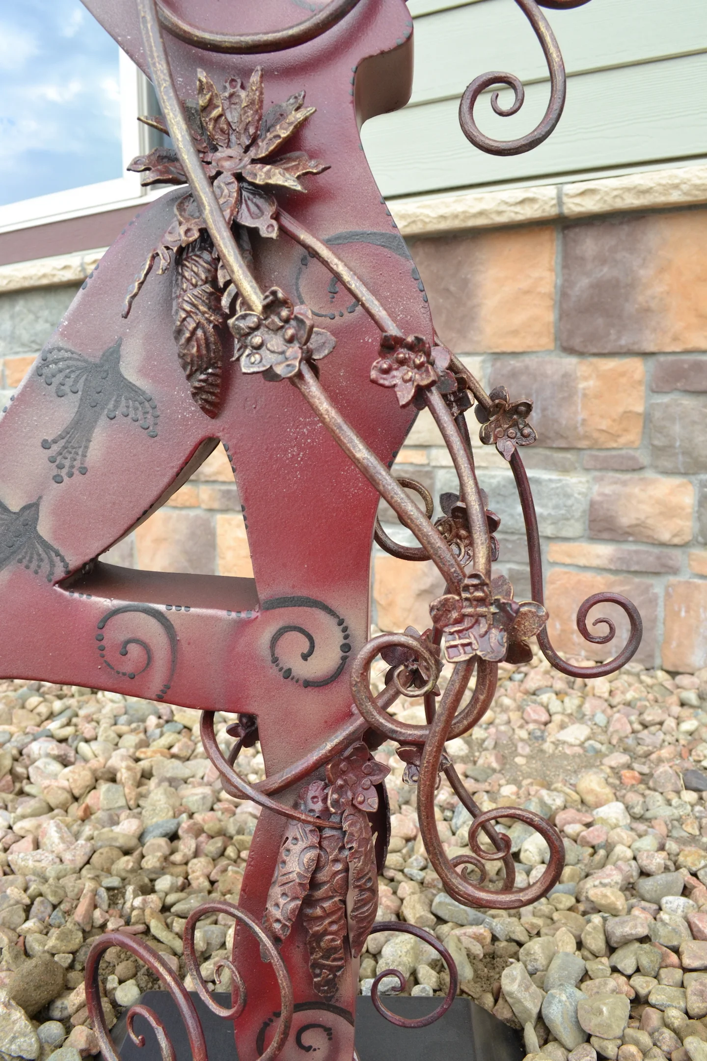 modern wrought-iron style metal and glass art, sculpture, and custom decor