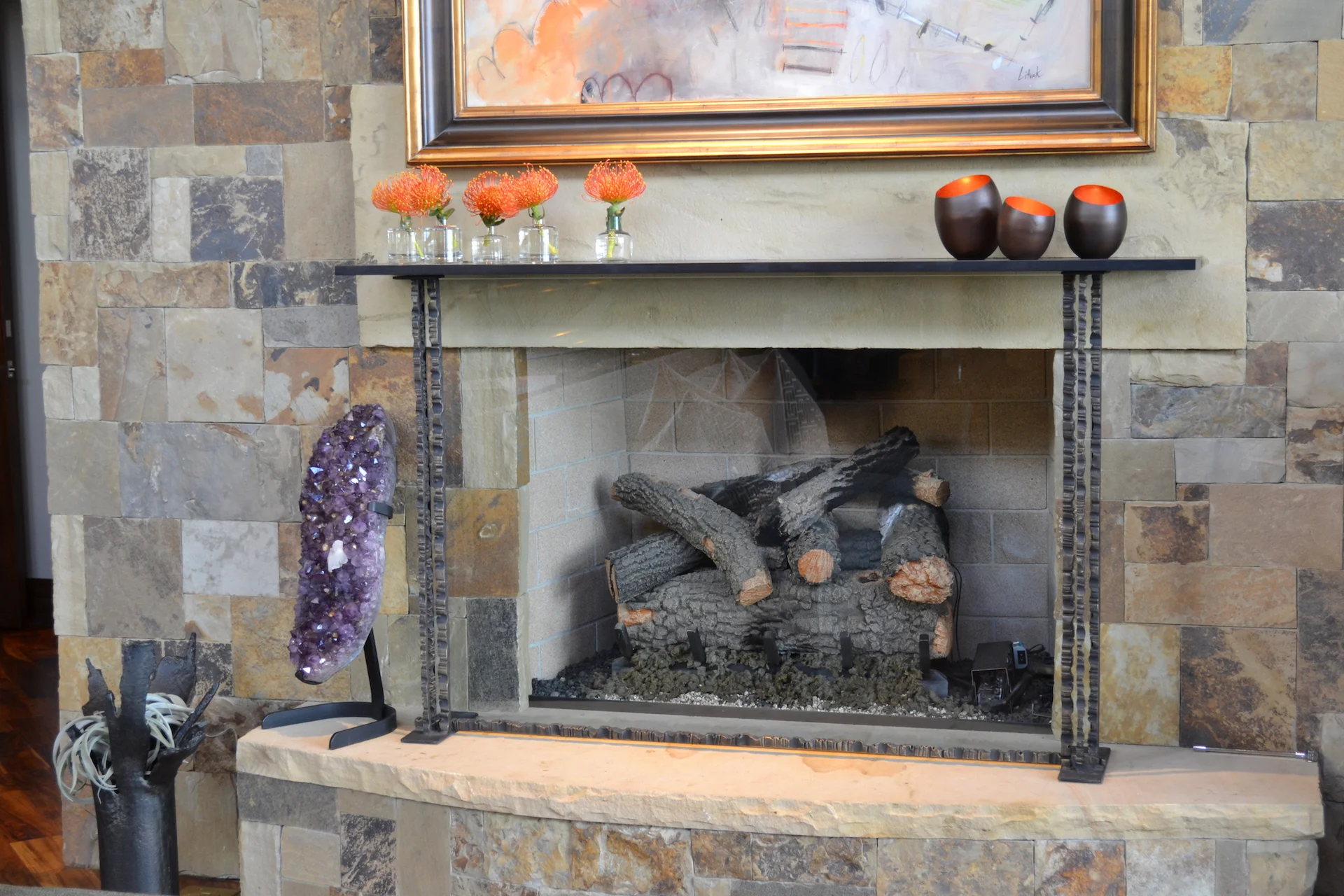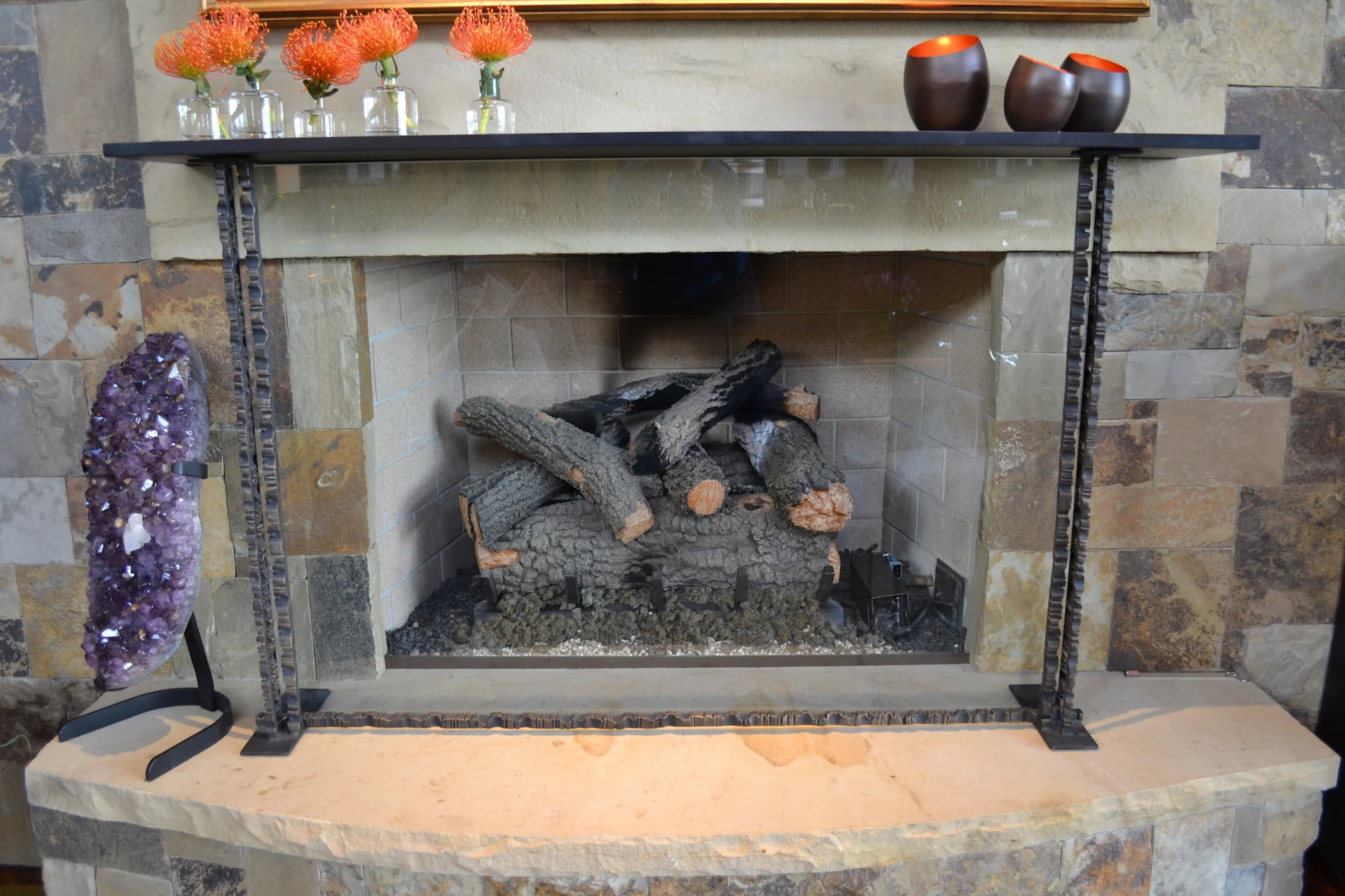 modern wrought-iron style metal and glass art, sculpture, and custom decor