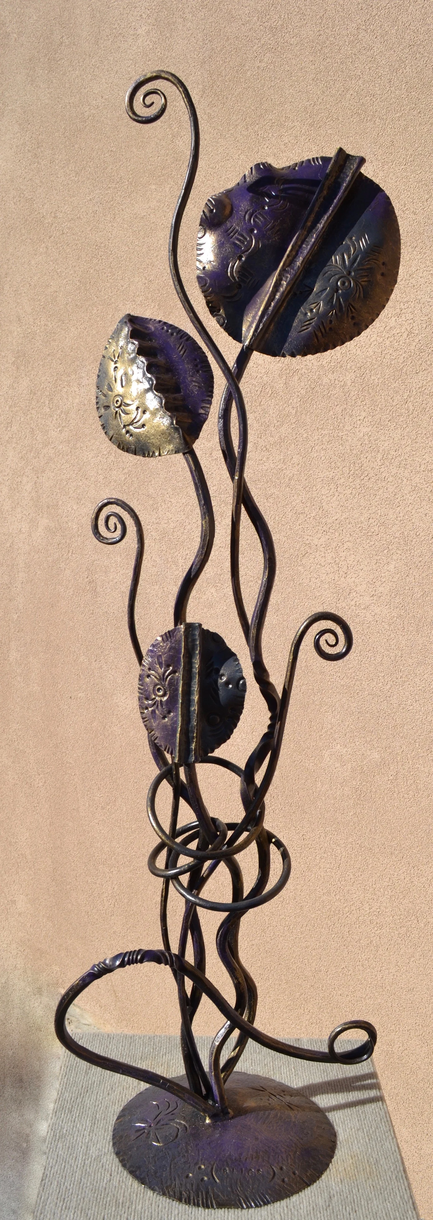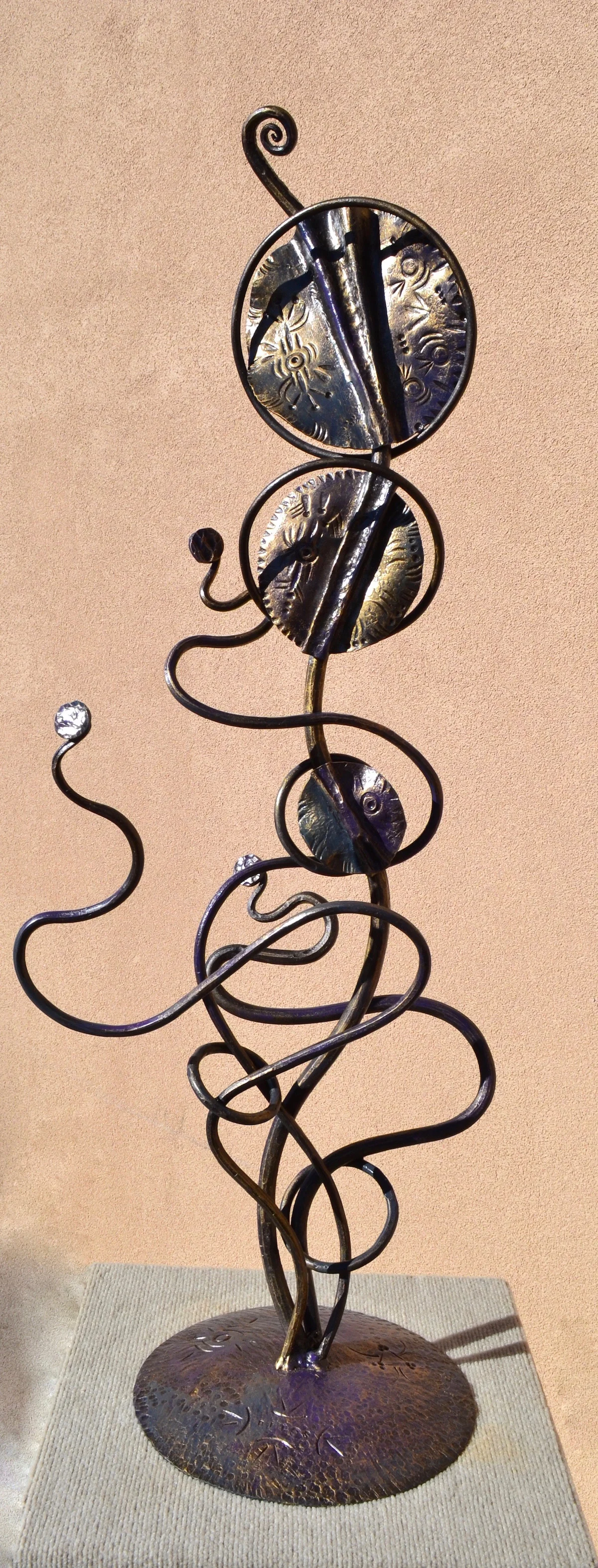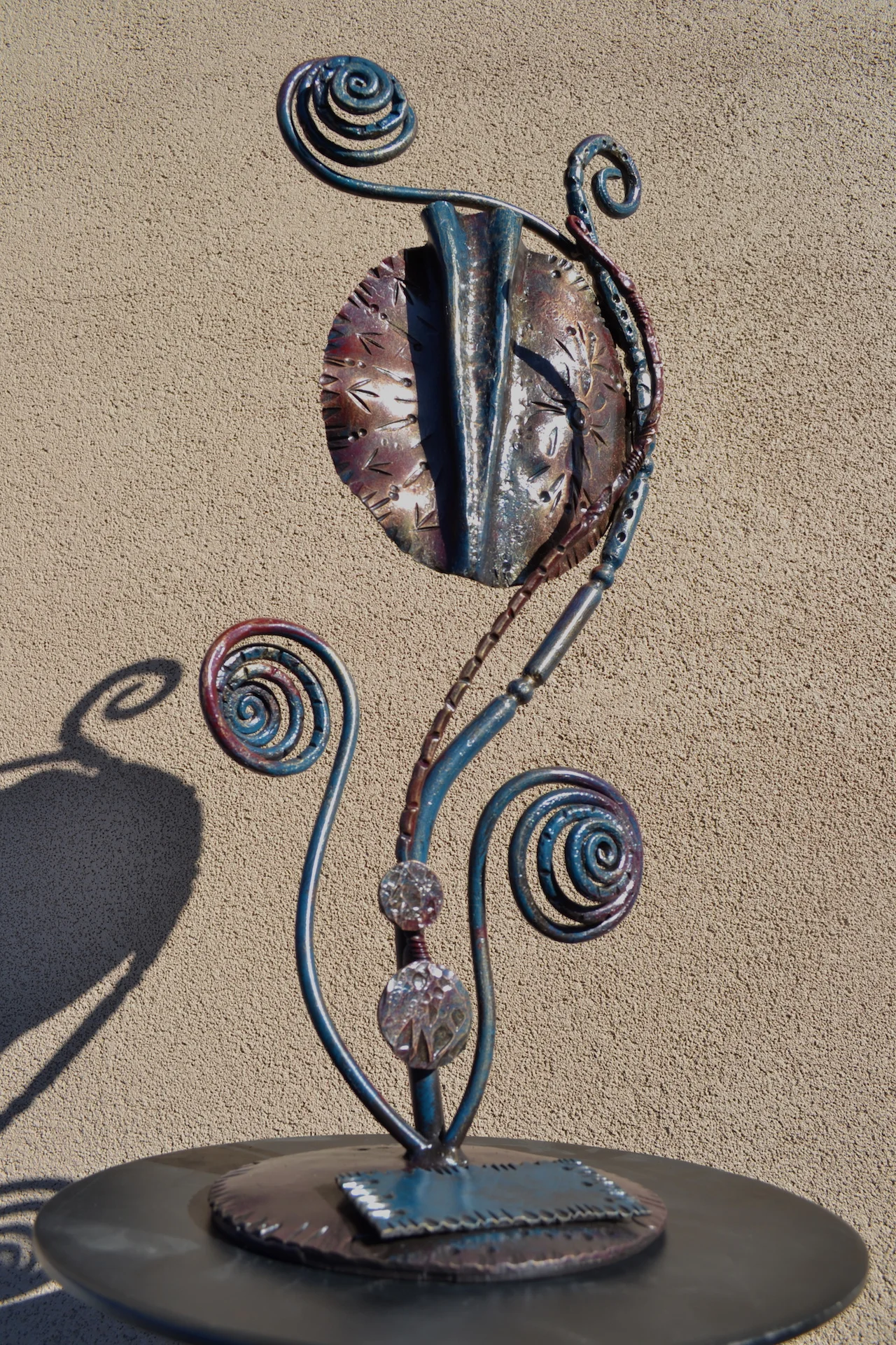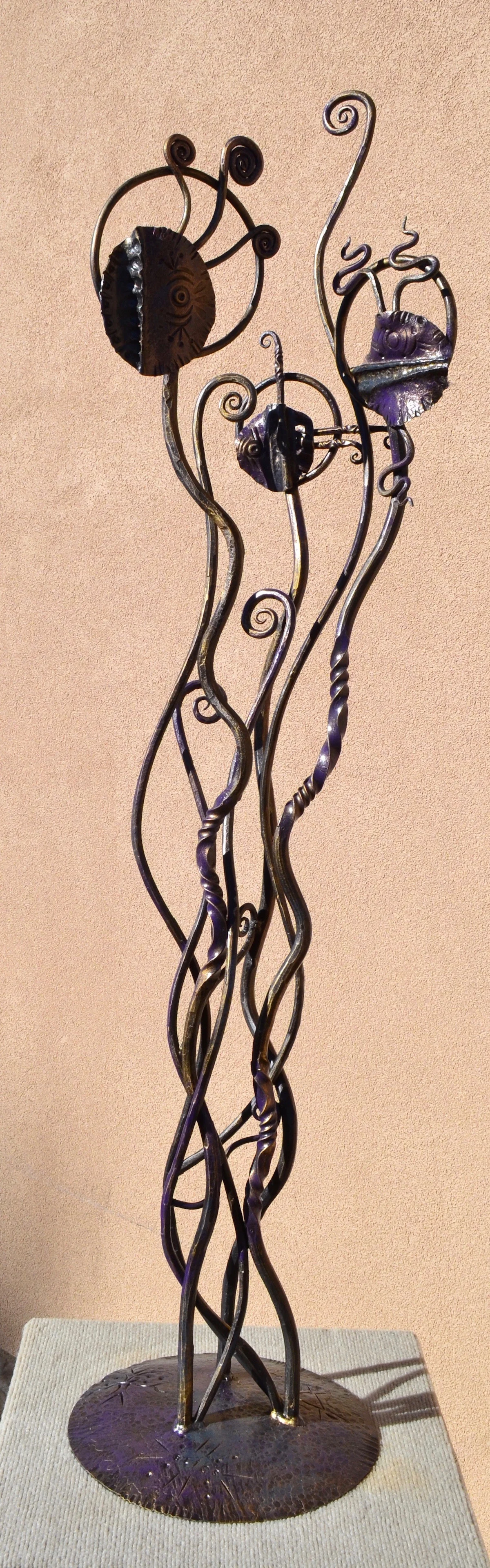 modern wrought-iron style metal and glass art, sculpture, and custom decor