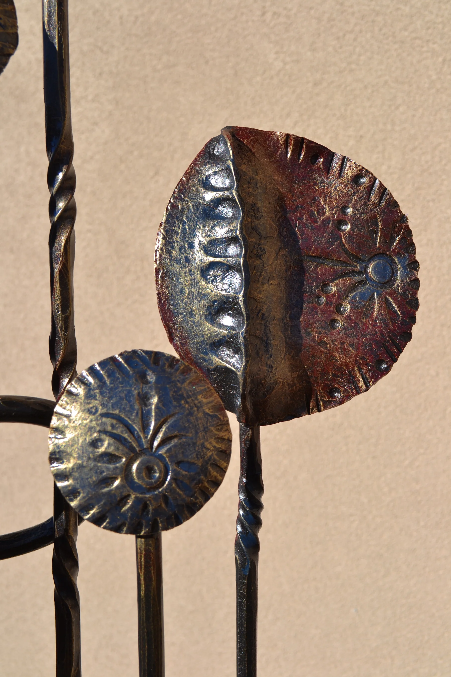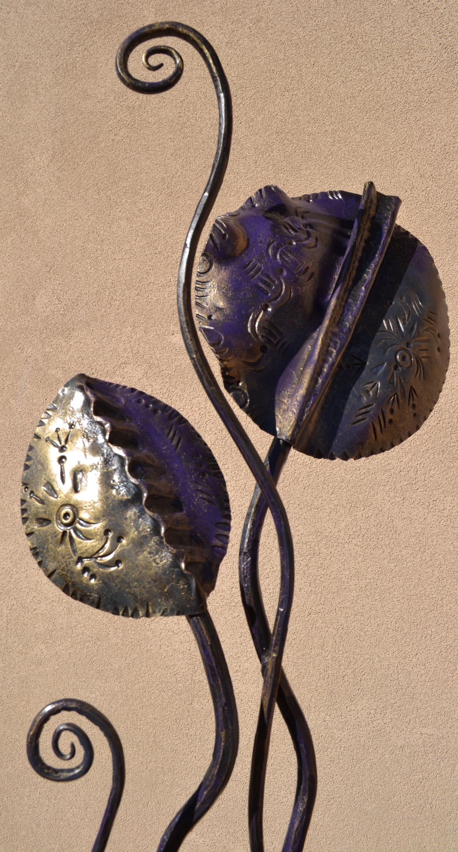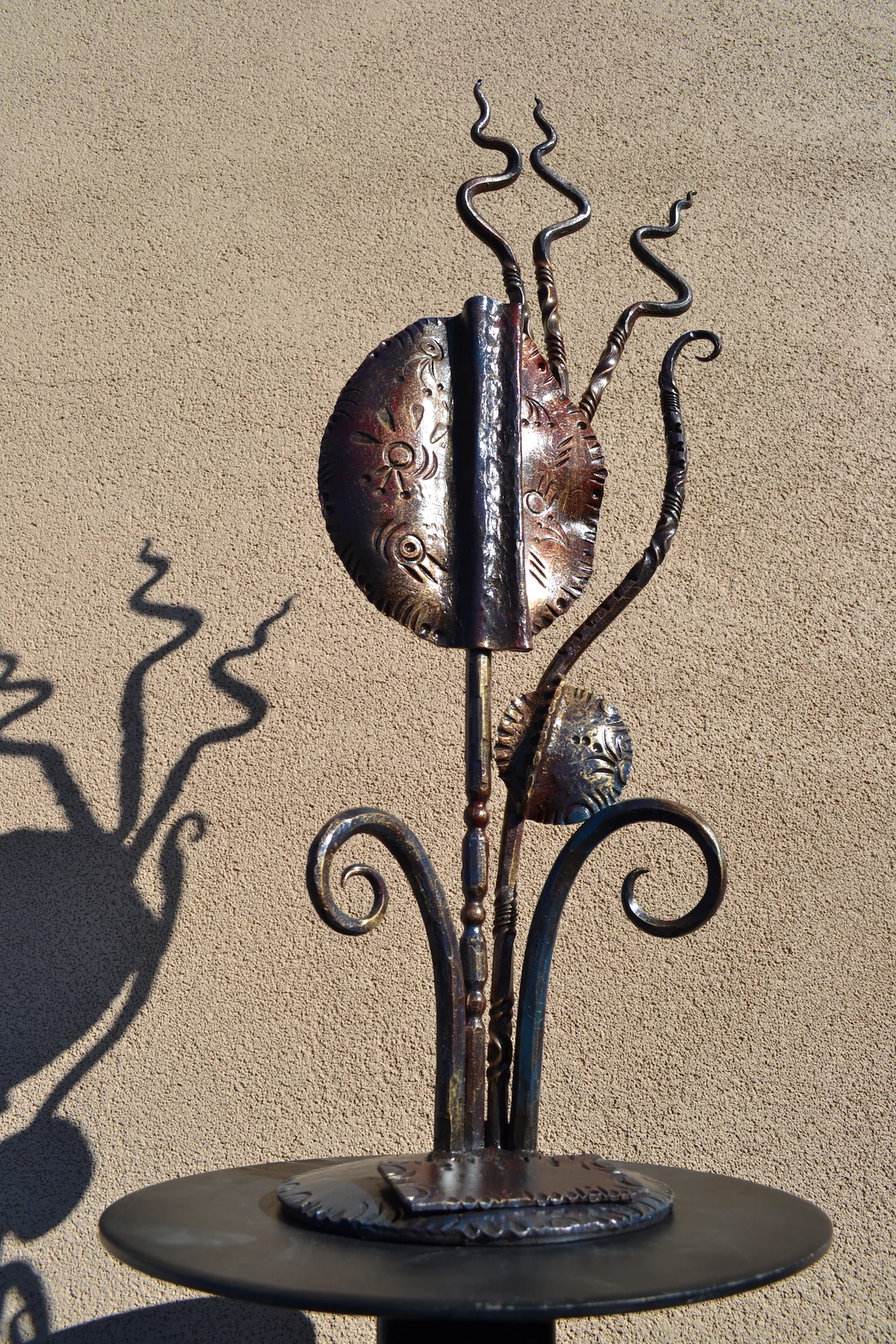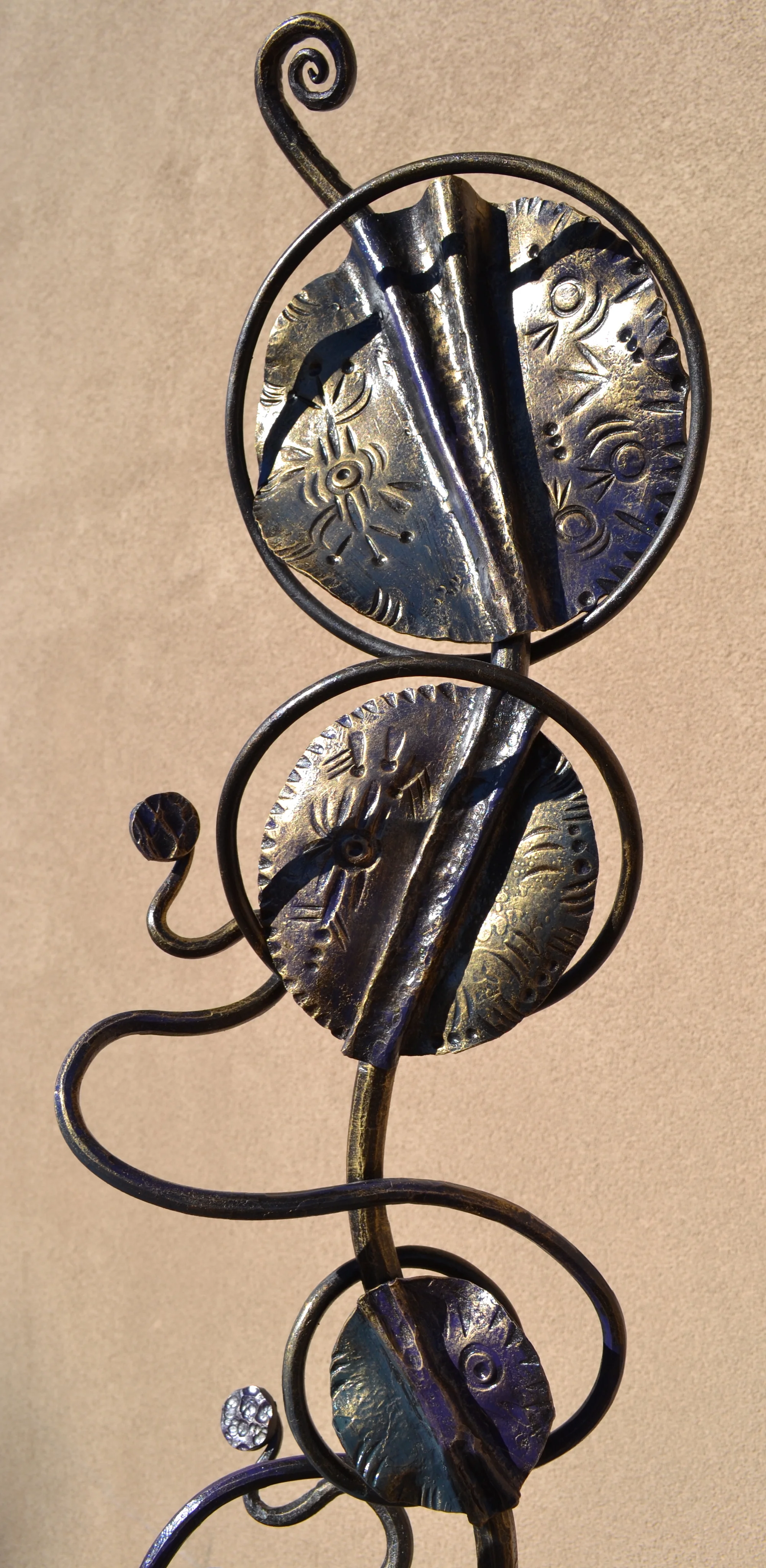 modern wrought-iron style metal and glass art, sculpture, and custom decor