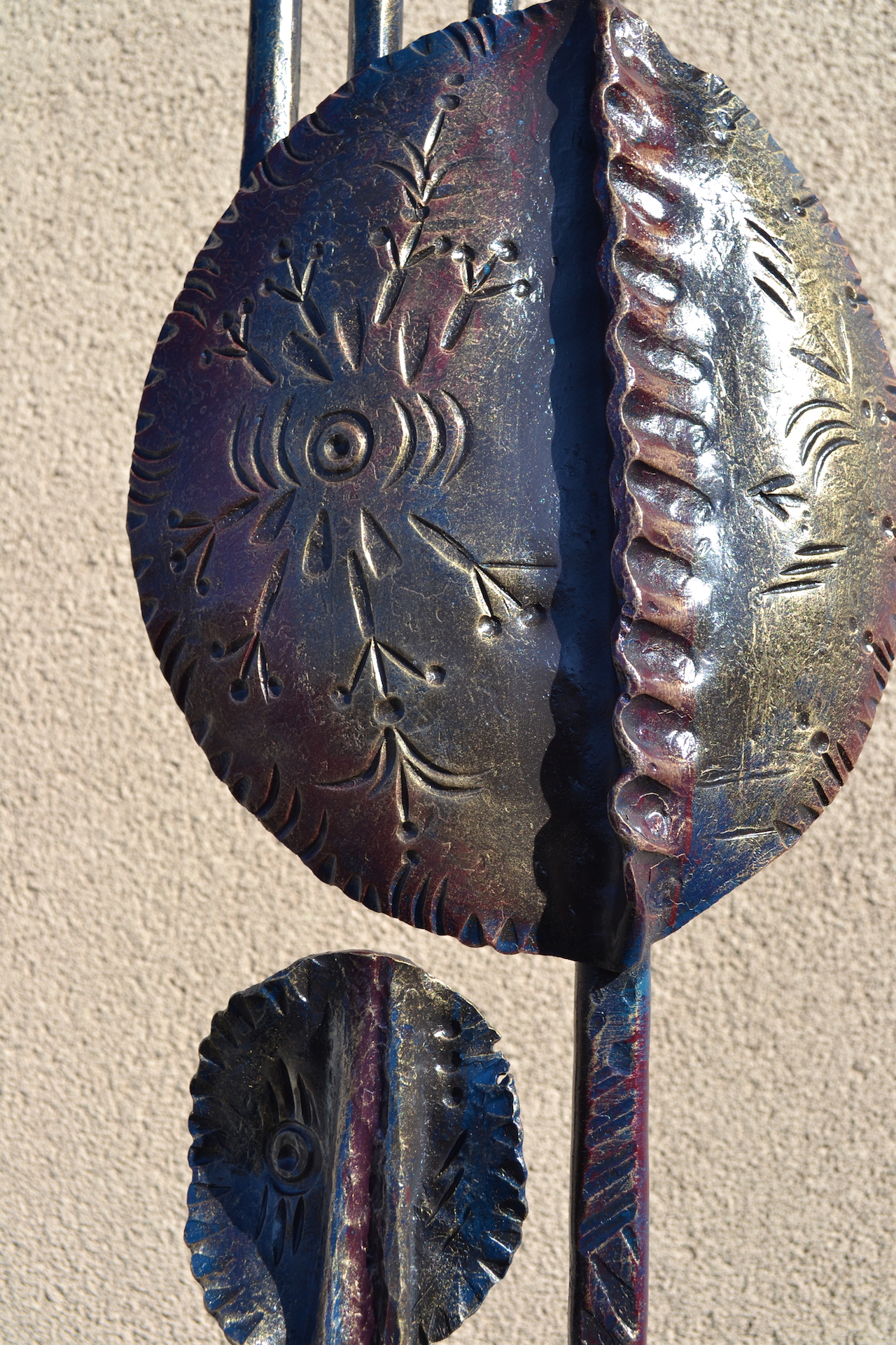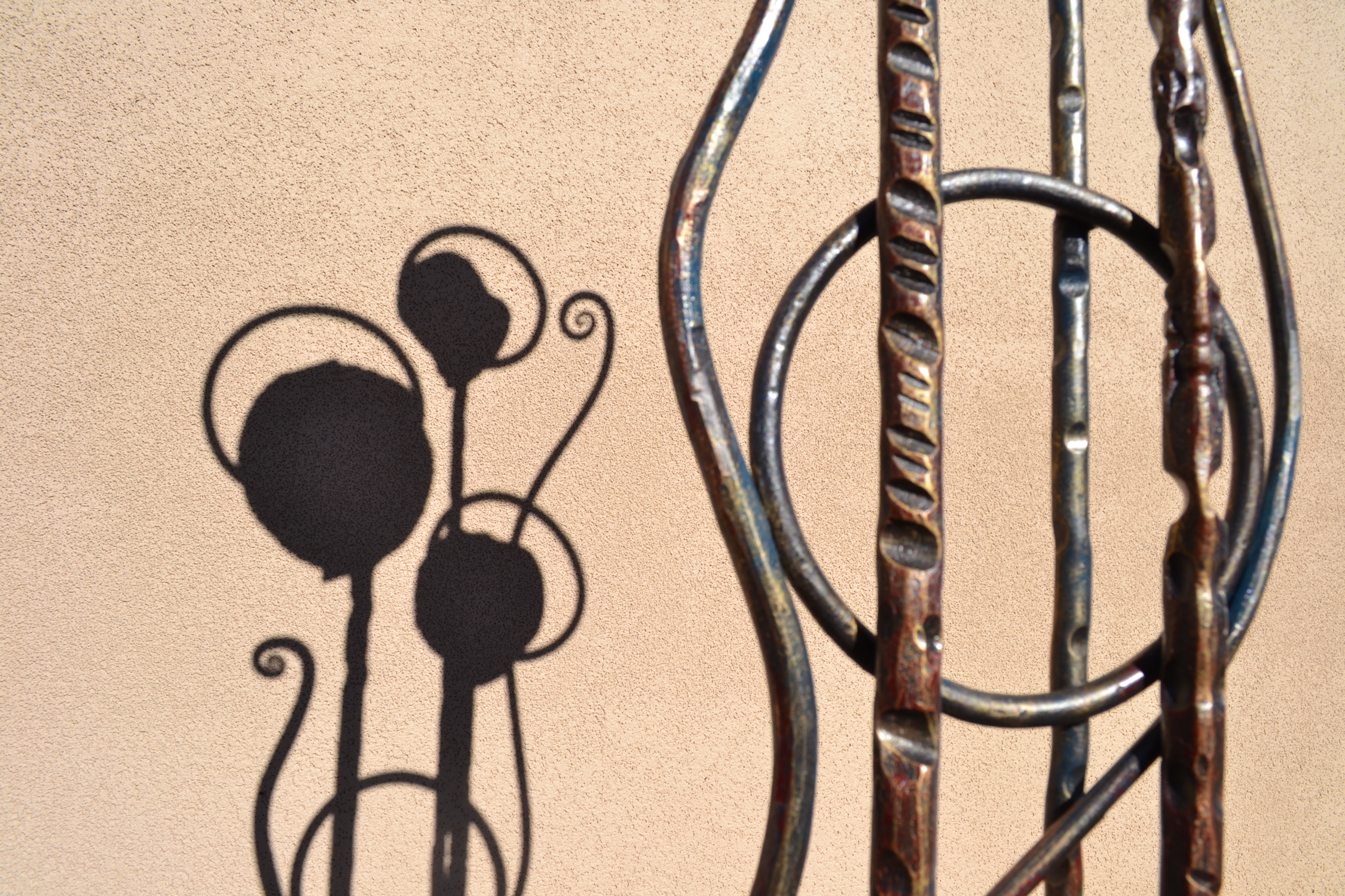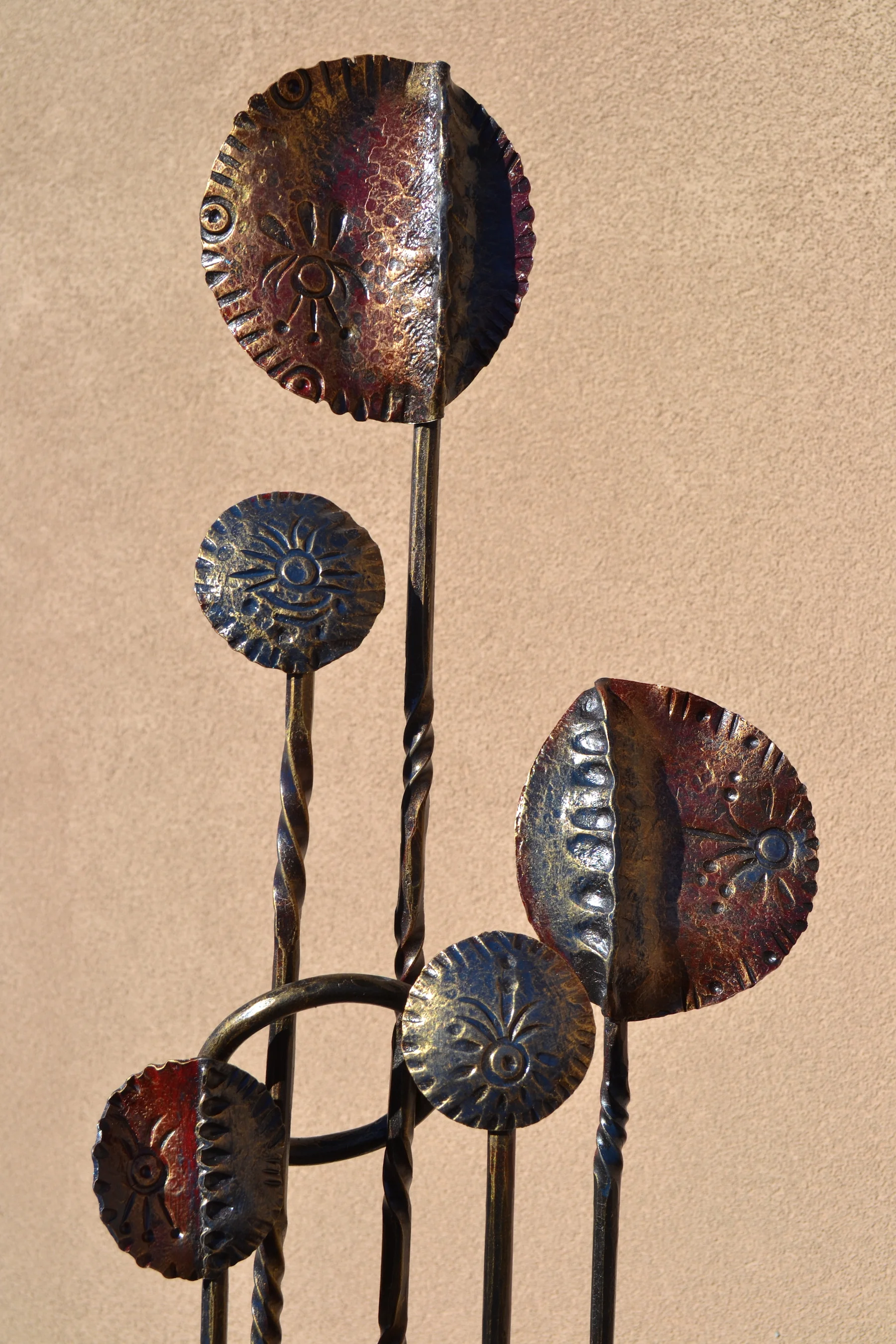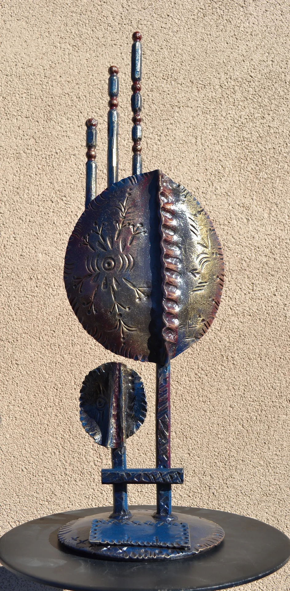 modern wrought-iron style metal and glass art, sculpture, and custom decor
