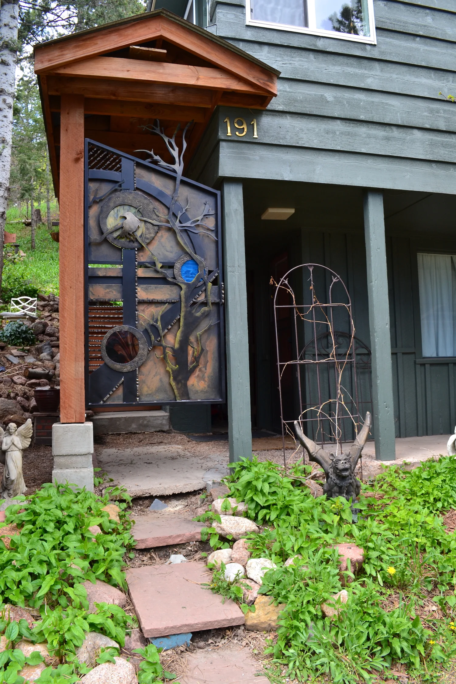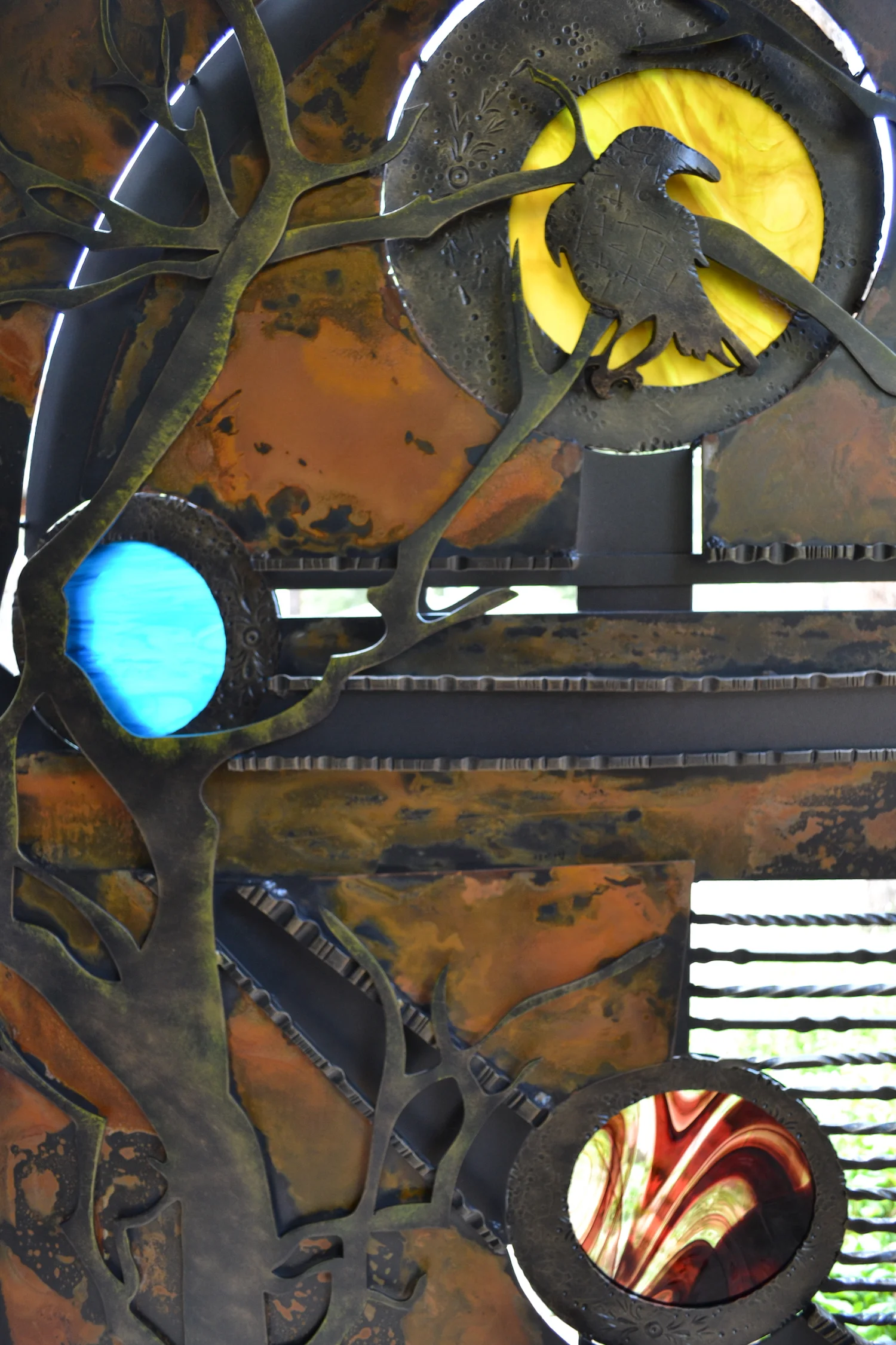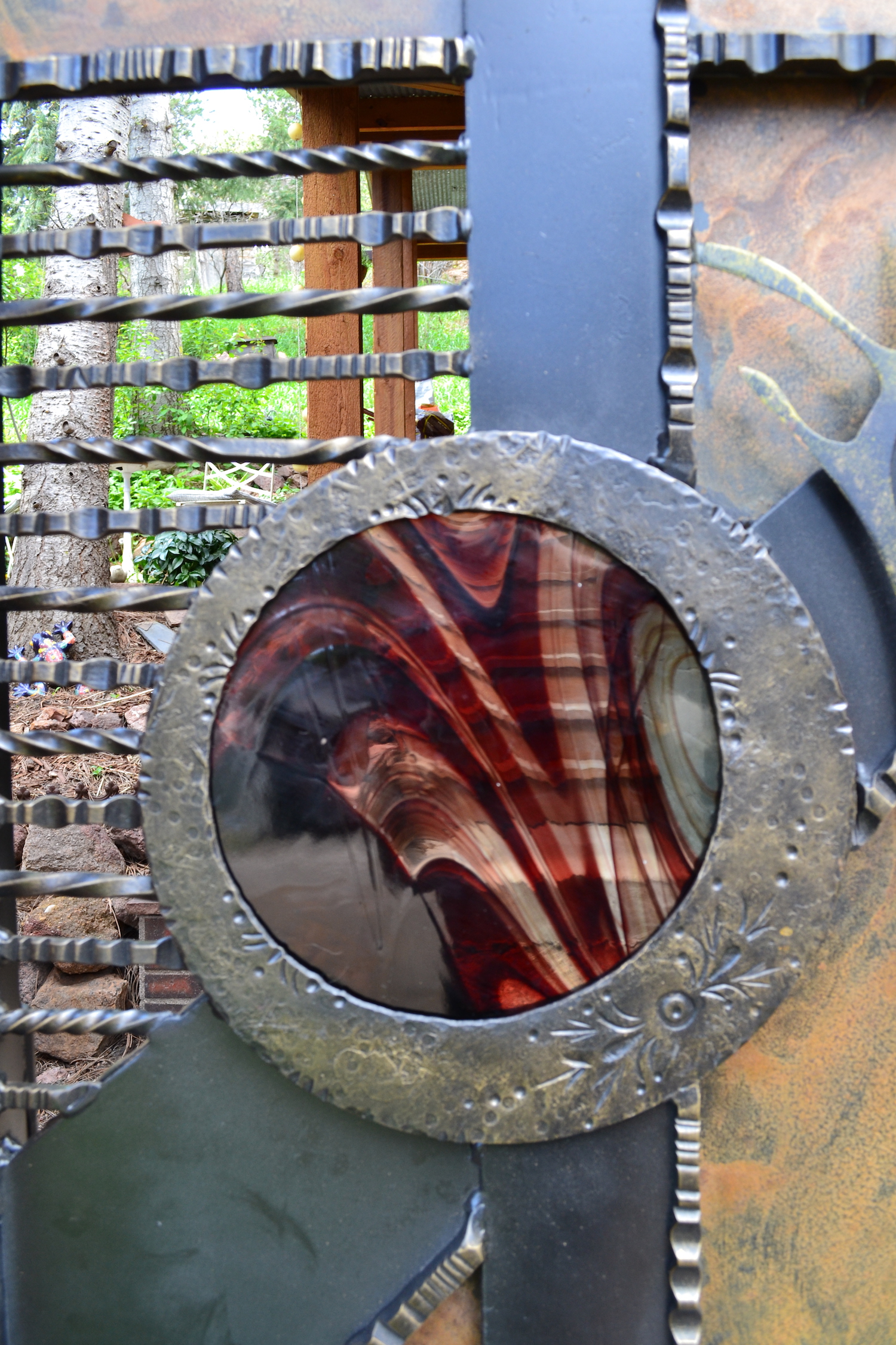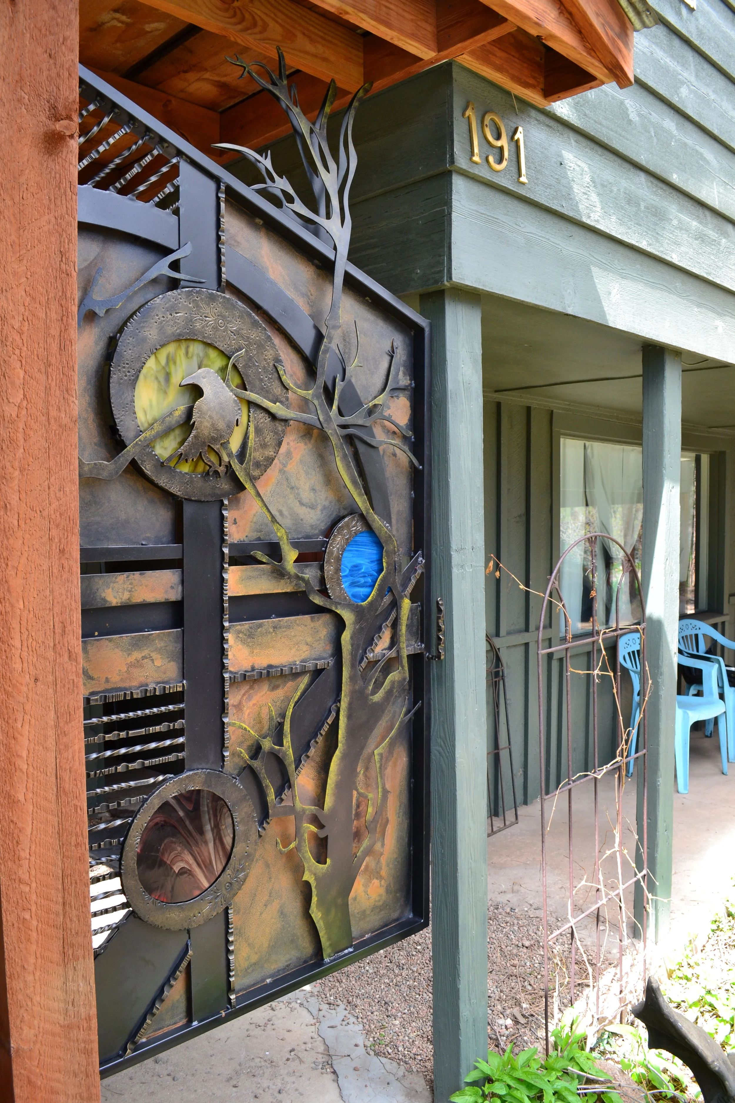 Hand-Forged Steel & Glass Crow Gate