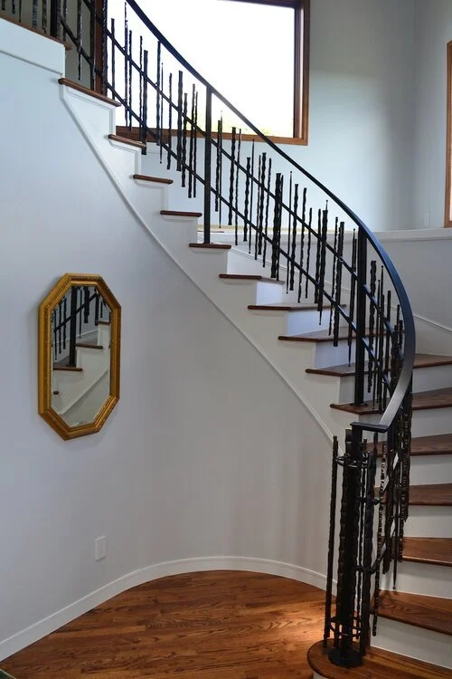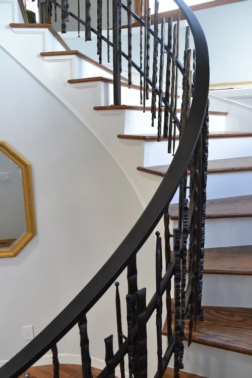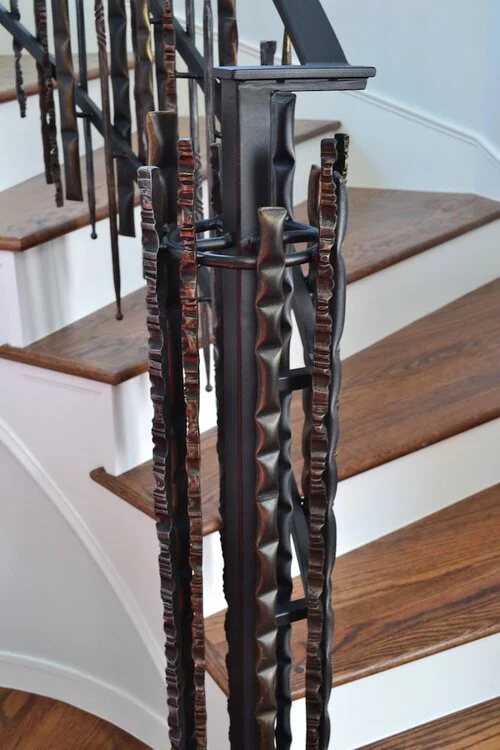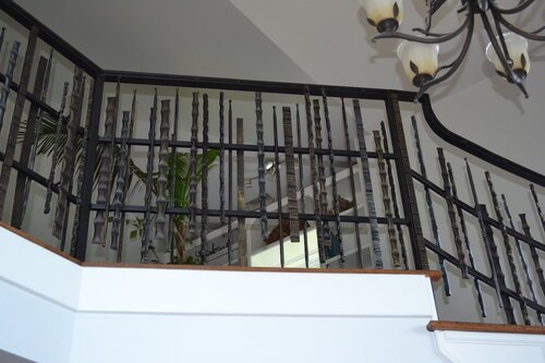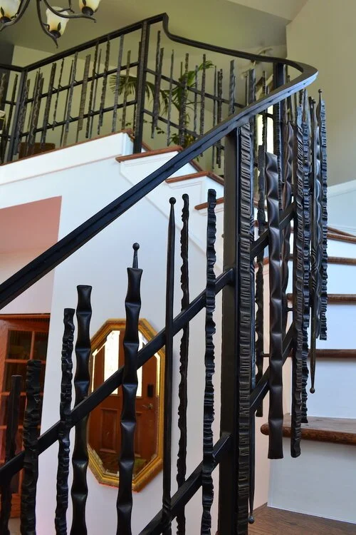modern wrought-iron style metal and glass art, sculpture, and custom decor