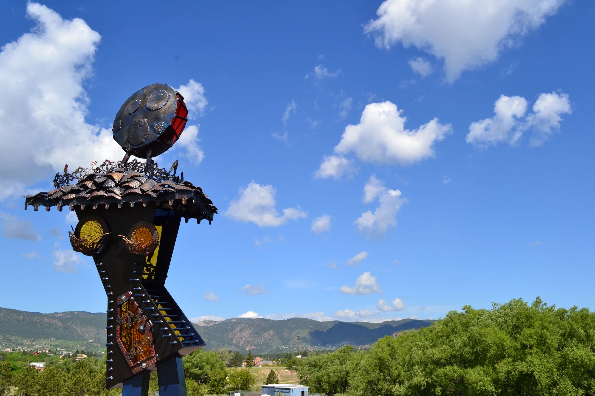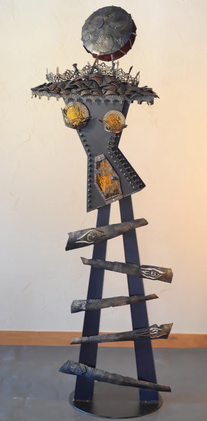 modern wrought-iron style metal and glass art, sculpture, and custom decor