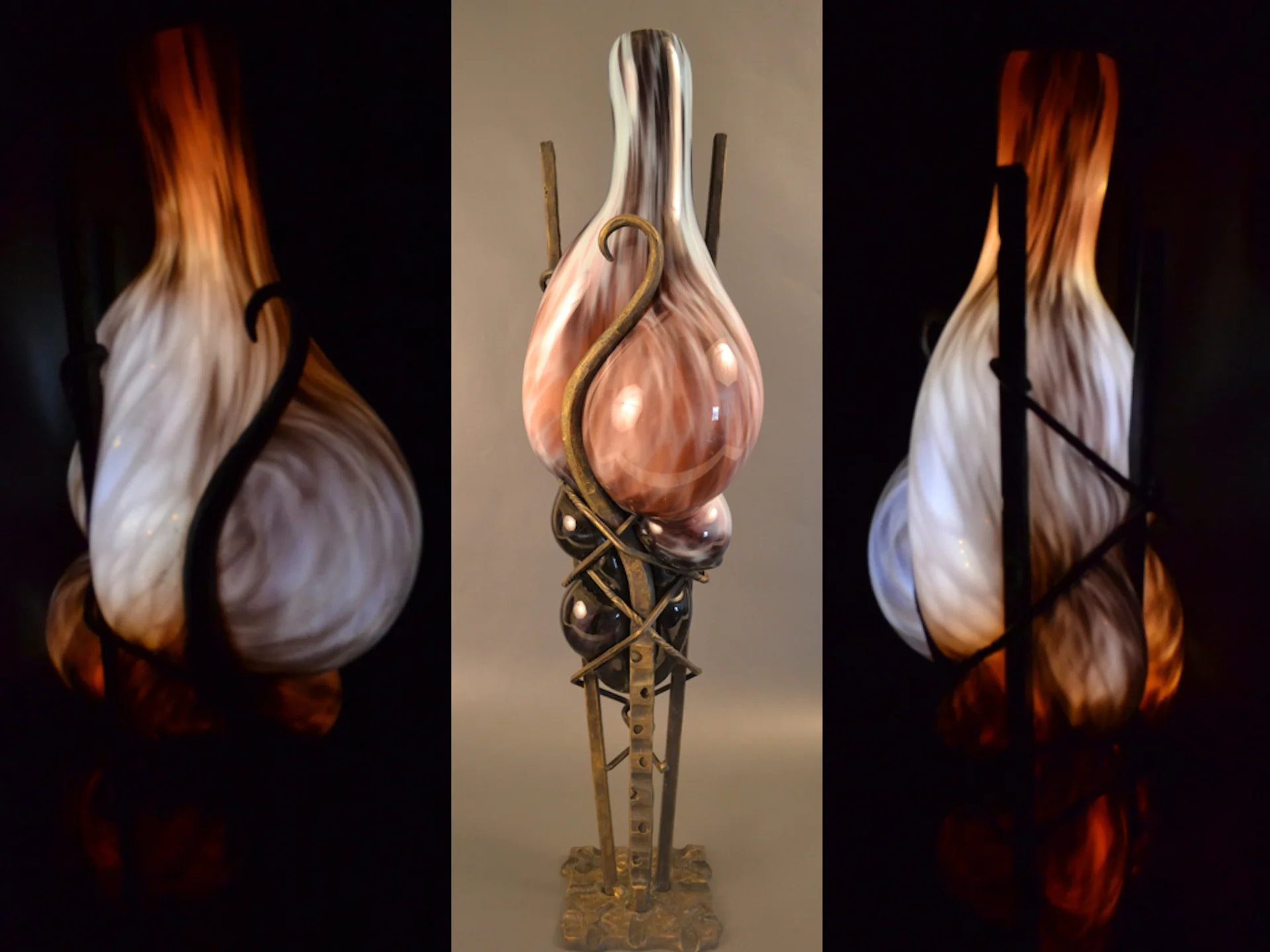 modern wrought-iron style metal and glass art, sculpture, and custom decor
