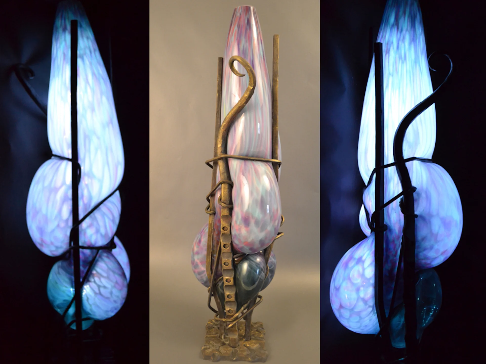modern wrought-iron style metal and glass art, sculpture, and custom decor