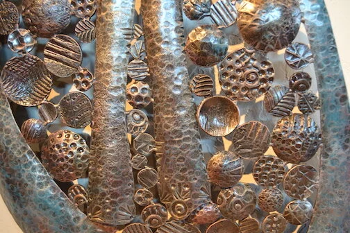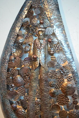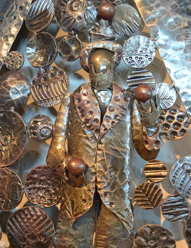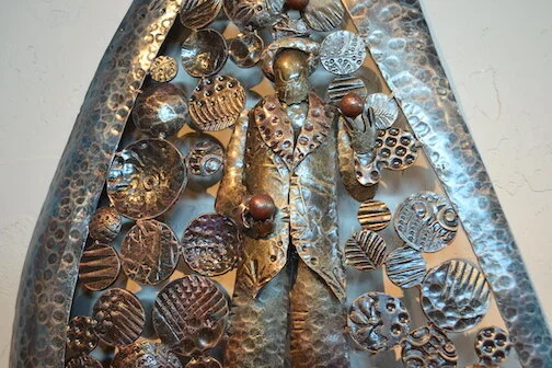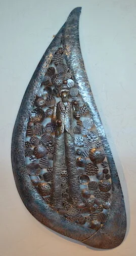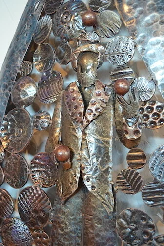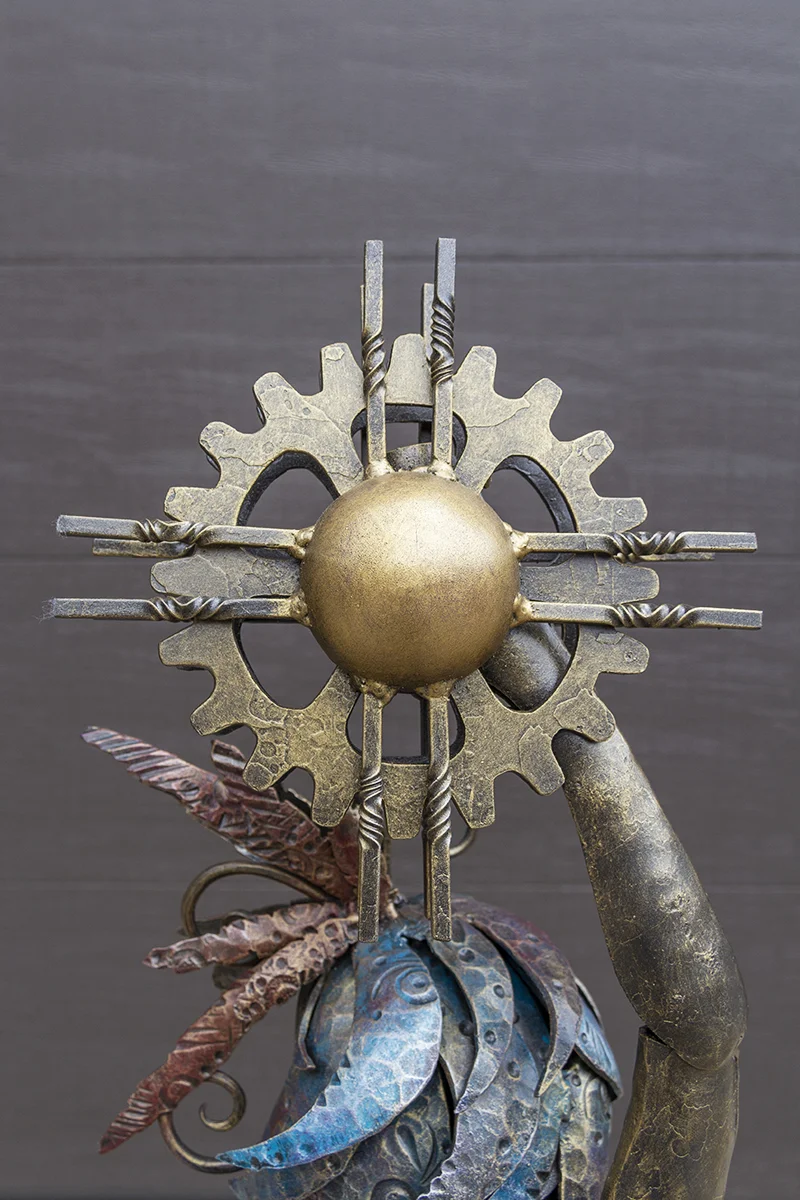 modern wrought-iron style metal and glass art, sculpture, and custom decor