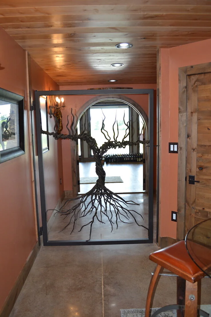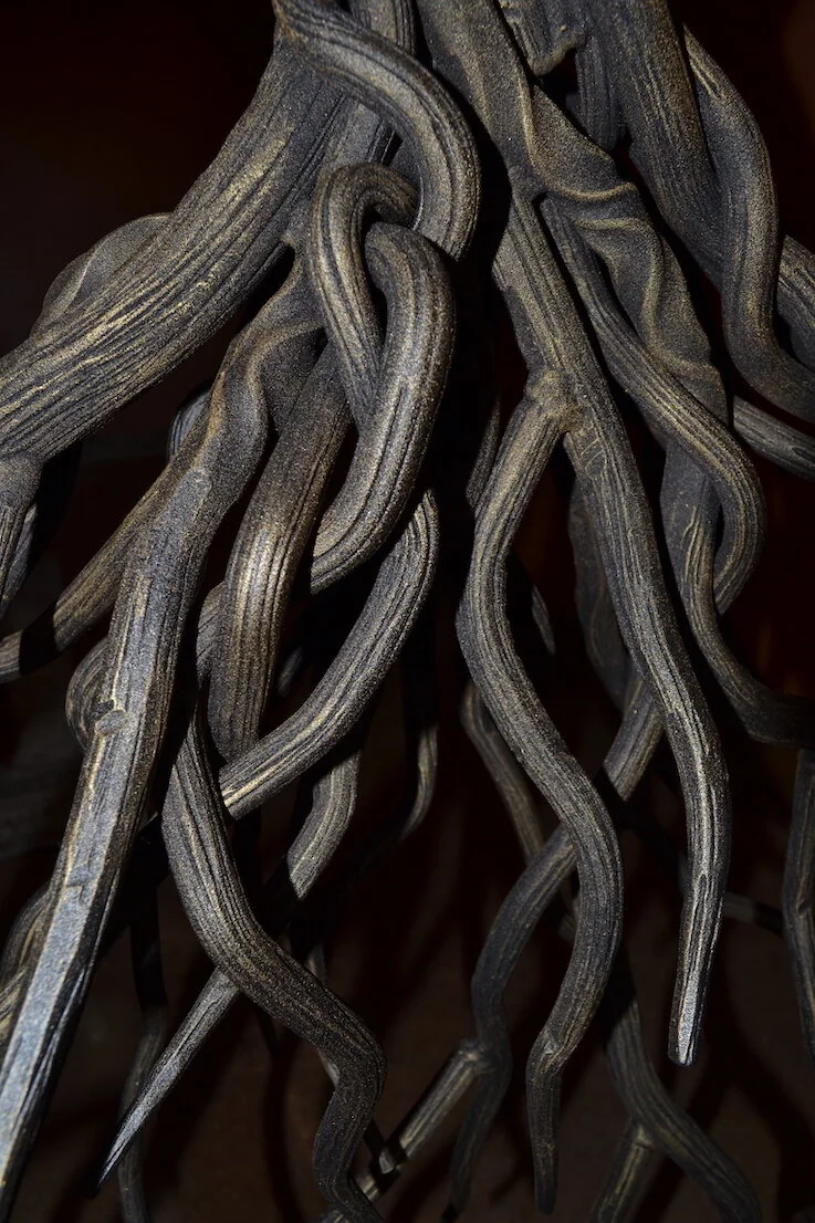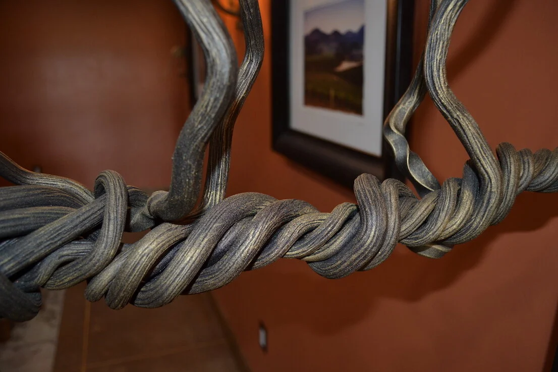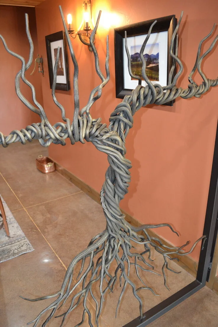 modern wrought-iron style metal and glass art, sculpture, and custom decor