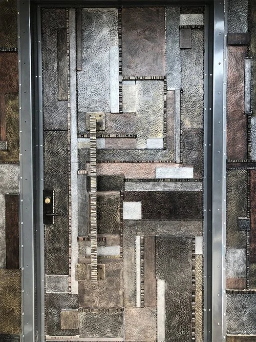 modern wrought-iron style metal and glass art, sculpture, and custom decor