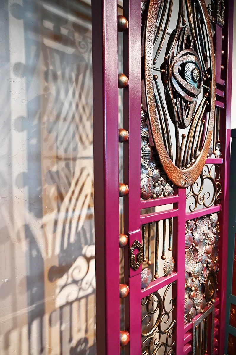 modern wrought-iron style metal and glass art, sculpture, and custom decor
