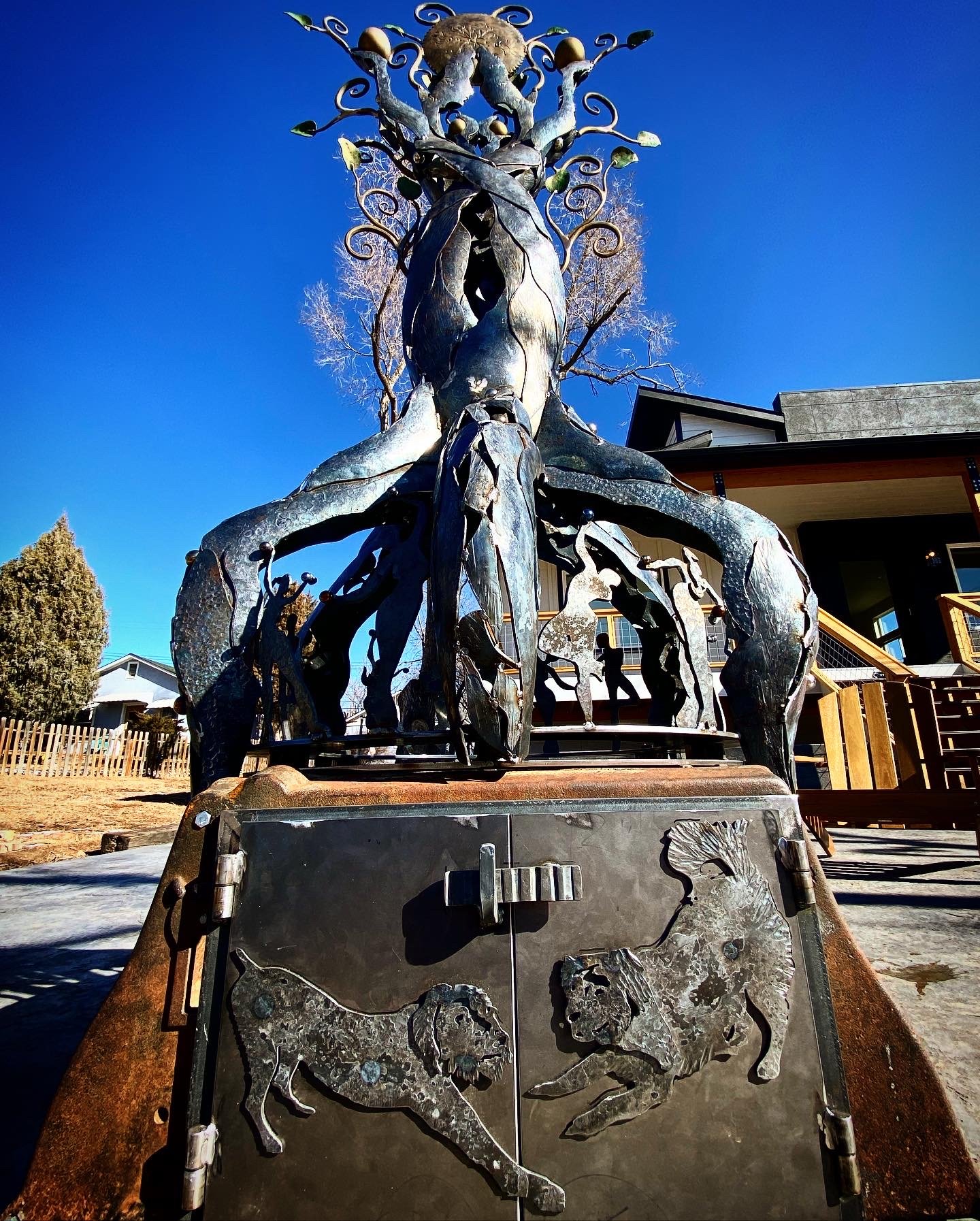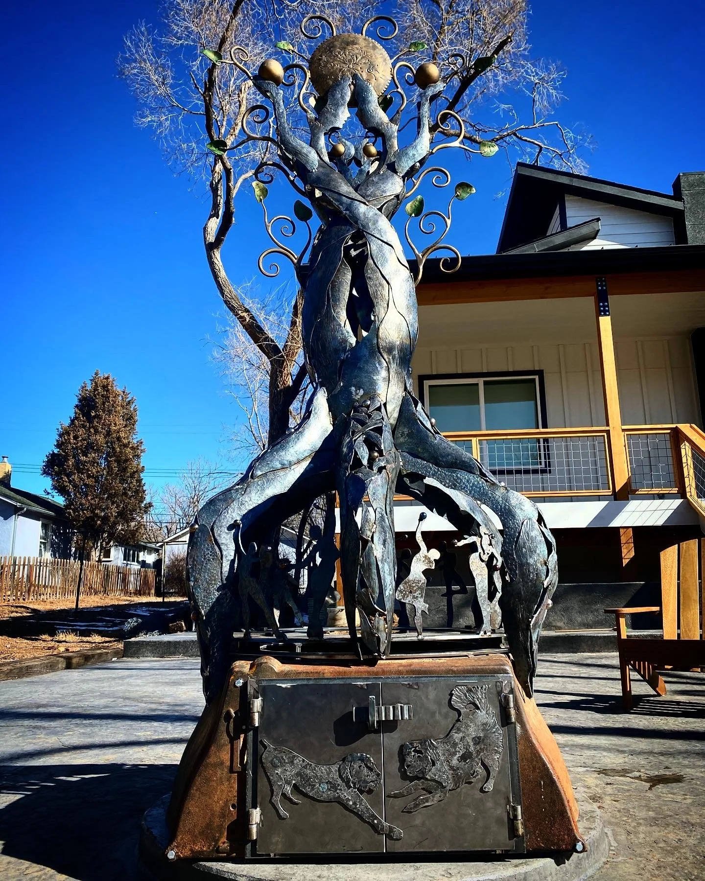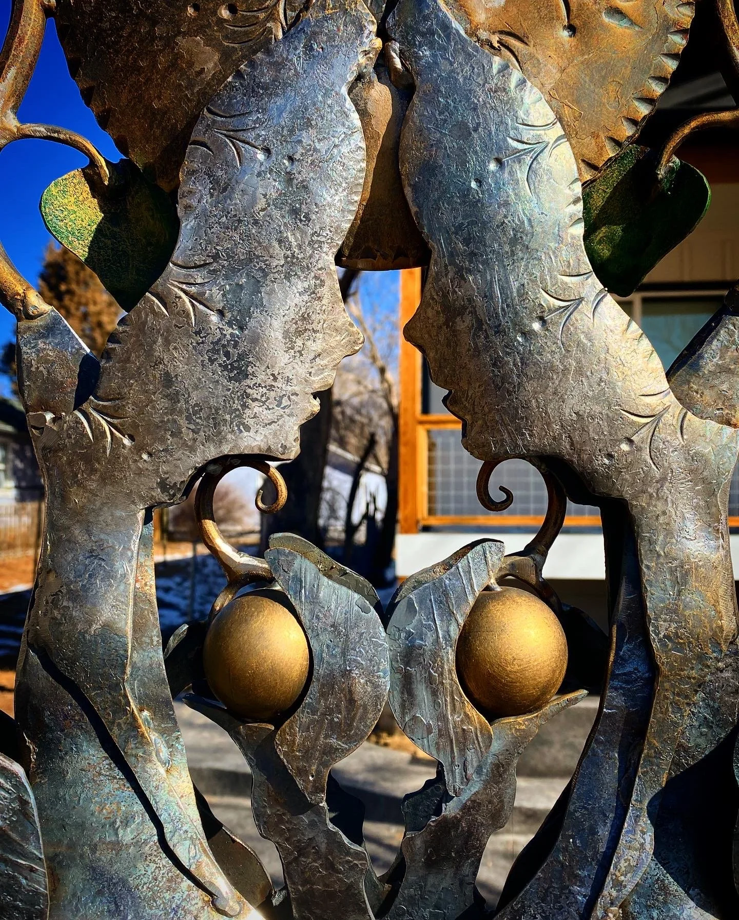 modern wrought-iron style metal and glass art, sculpture, and custom decor