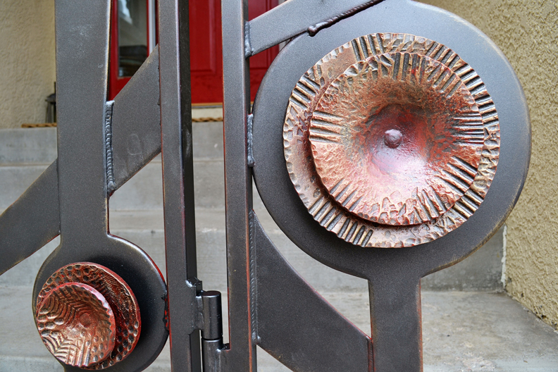 modern wrought-iron style metal and glass art, sculpture, and custom decor