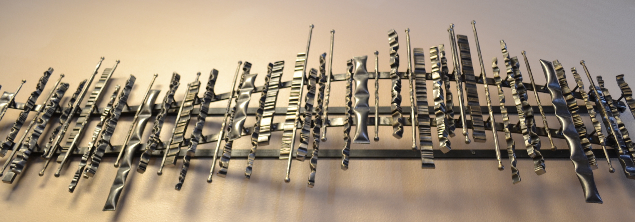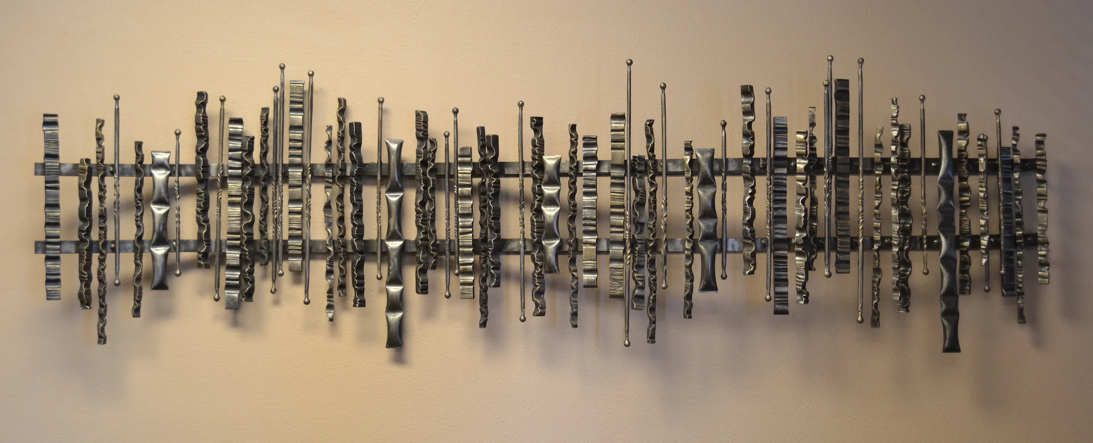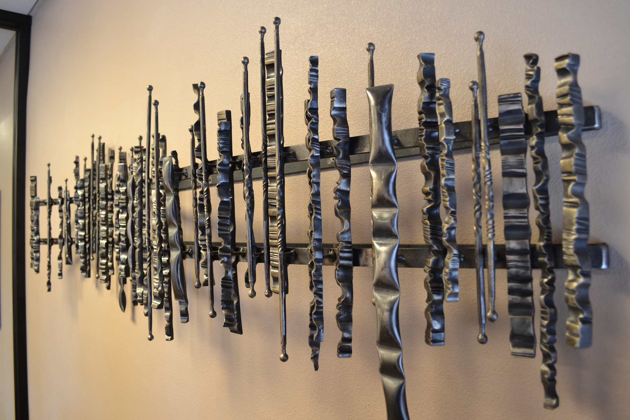 modern wrought-iron style metal and glass art, sculpture, and custom decor